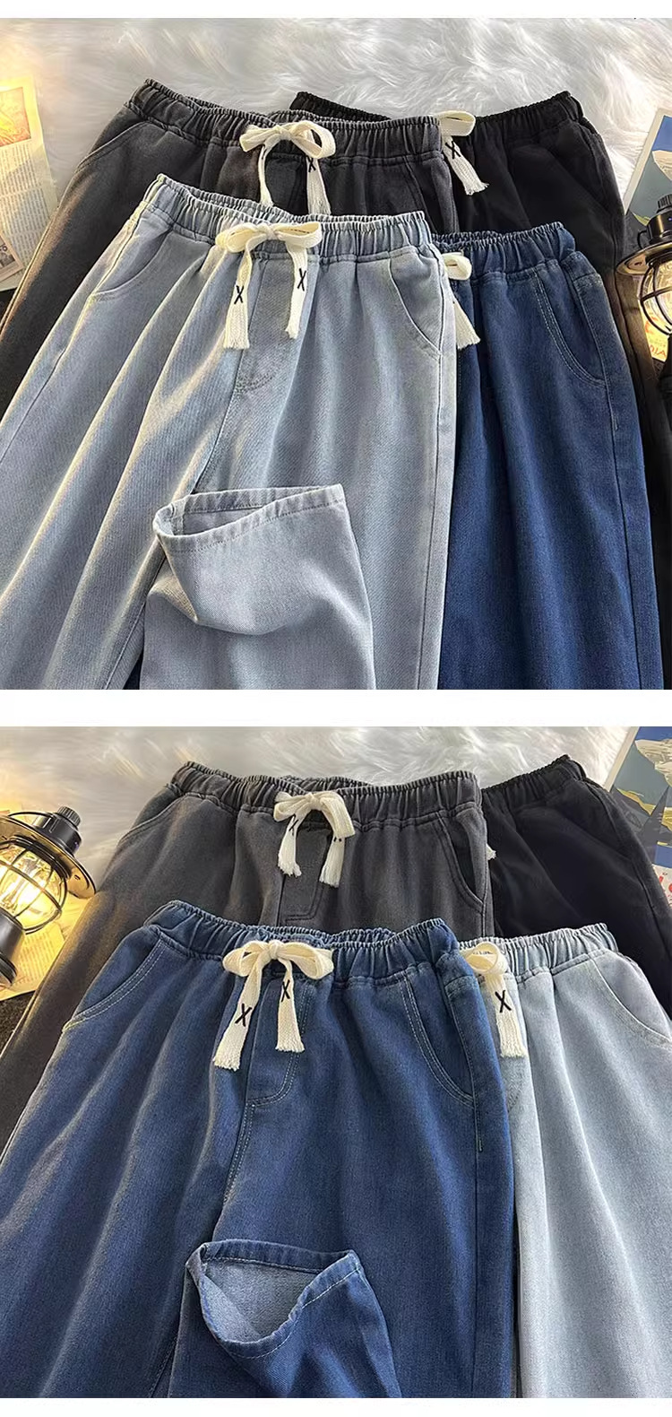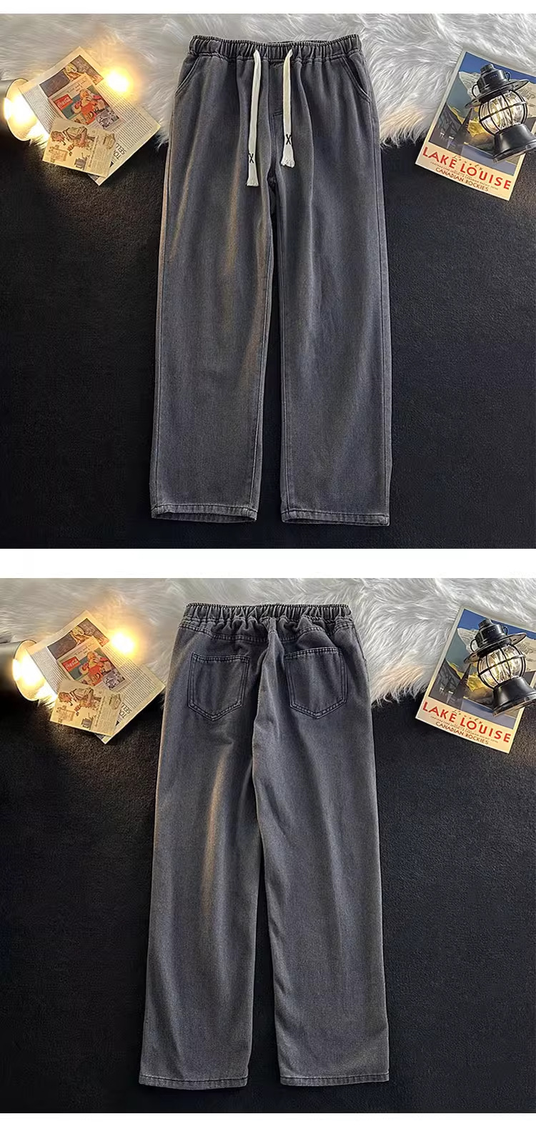 청바지 남성용 루즈 스트레이트 하이 스트리트 패션은 트렌디 한 얇은 캐주얼 와이드 레그 롱 팬츠 10 대를위한 올 매치스토어 가기