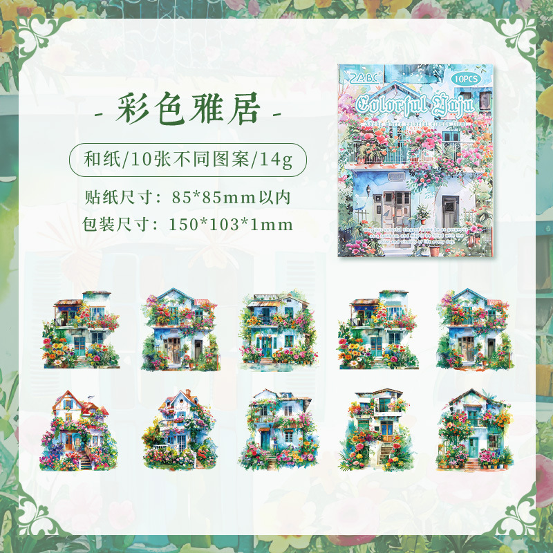 다채로운 꿈의 집 정원 조경 테마와 종이 스티커 시리즈 문학과 예술 복고풍 꽃 손 계정 장식 10 조각