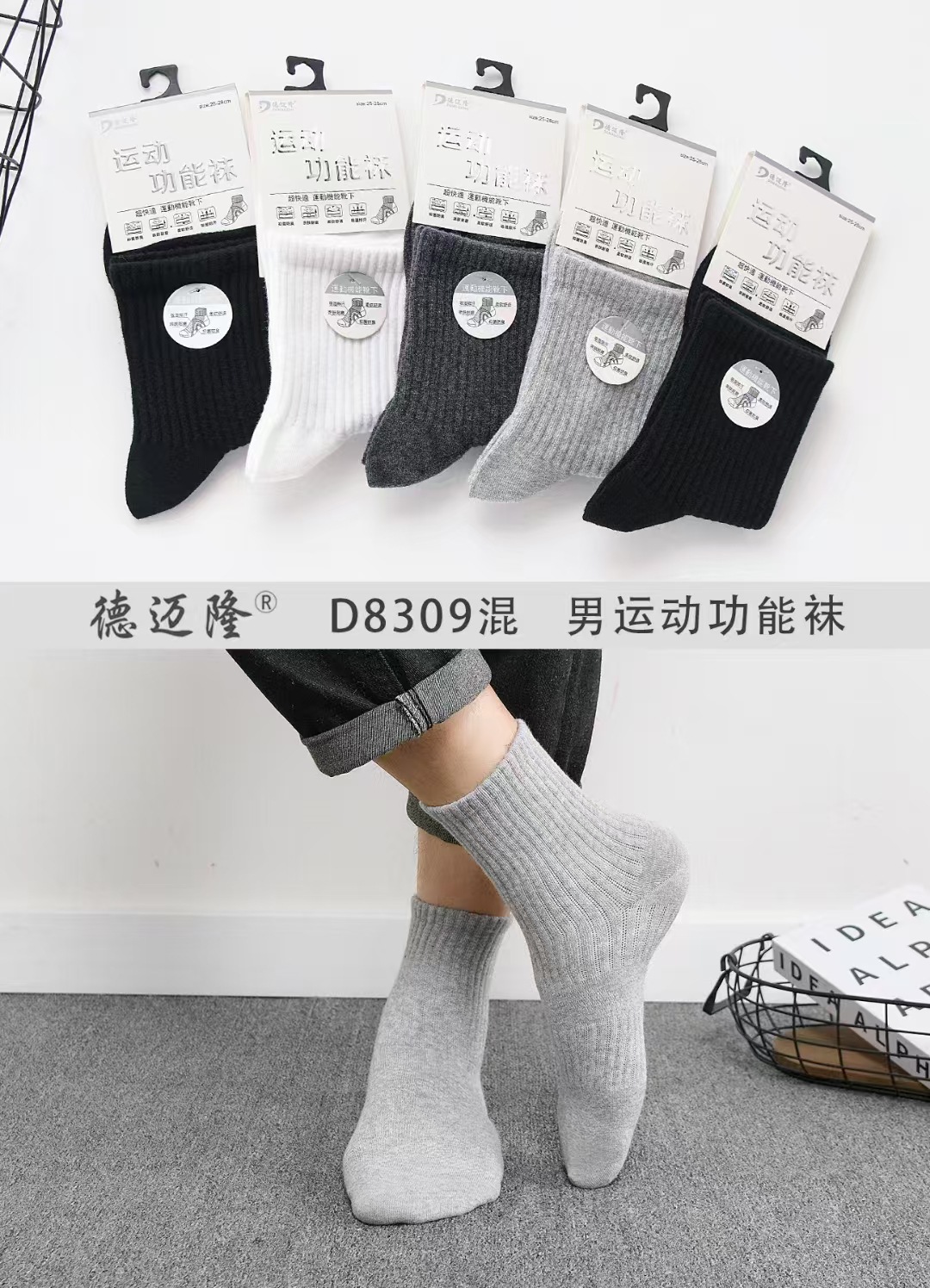 De Myron 가을과 겨울 새로운 폭발 남자 스포츠 튜브 기능성 코튼 양말 땀 흡수 내마모성 재생 스포츠 필수스토어 가기