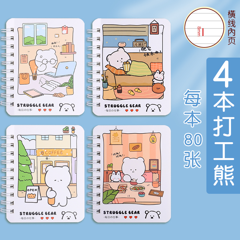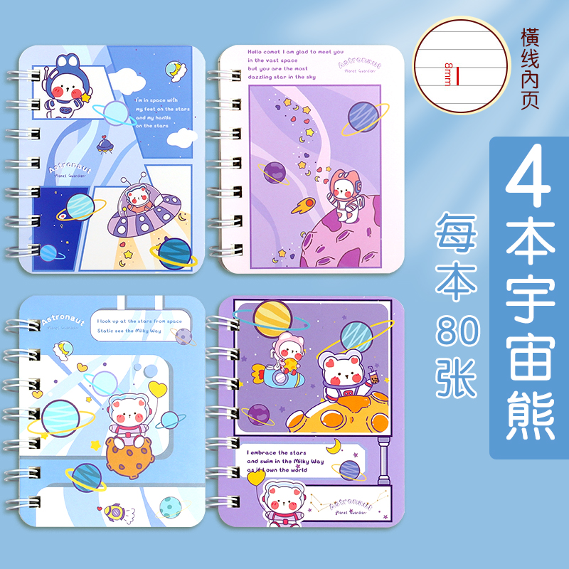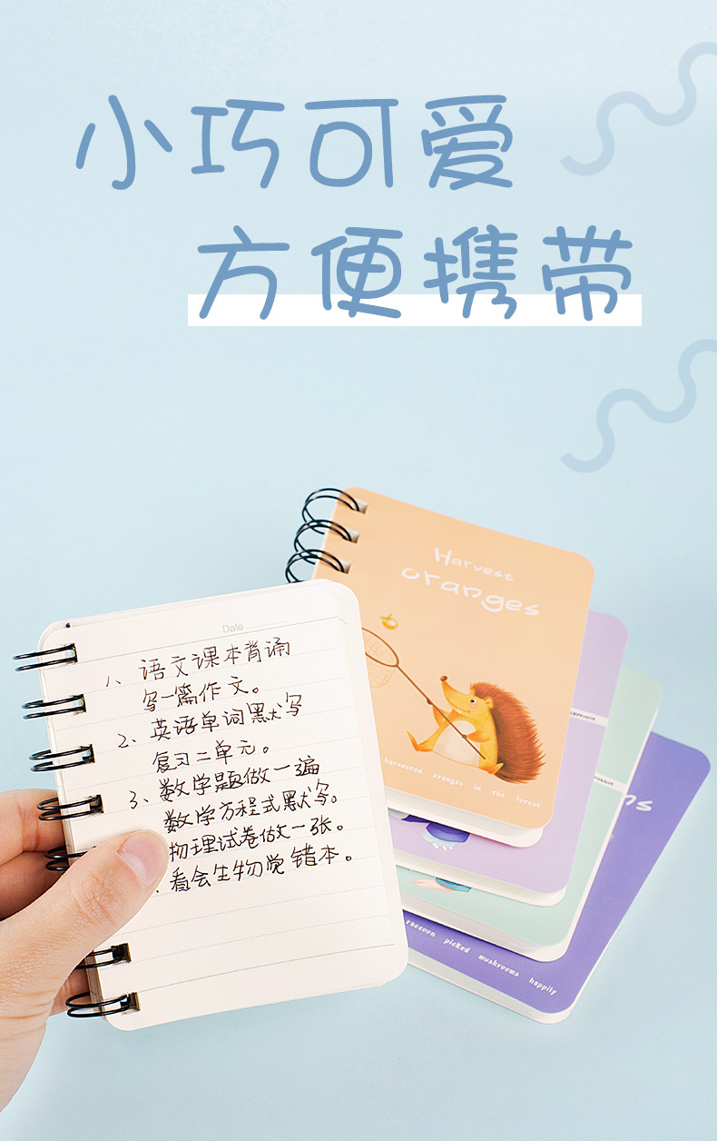 초등 학생을위한 귀여운 만화 코일 작은 책 휴대용 포켓 북 숙제 노트 나선형 코일스토어 가기
