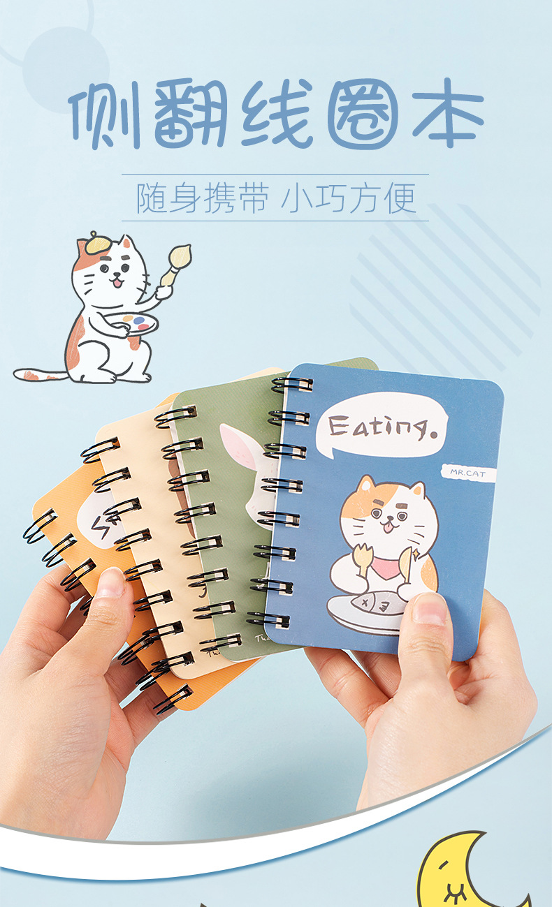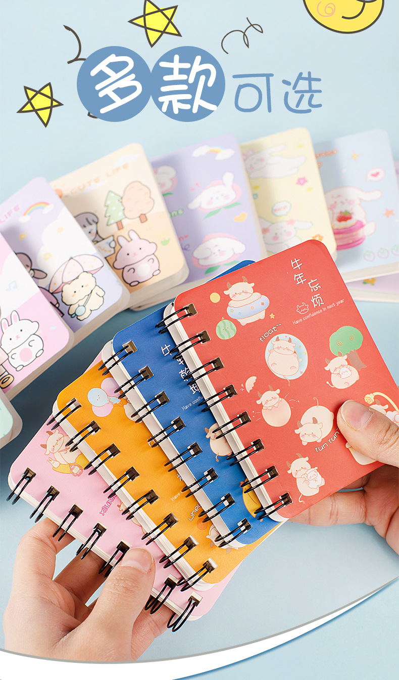 초등 학생을위한 귀여운 만화 코일 작은 책 휴대용 포켓 북 숙제 노트 나선형 코일