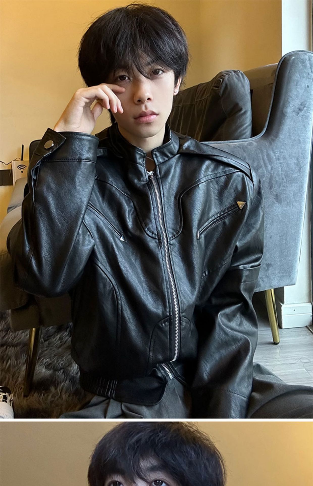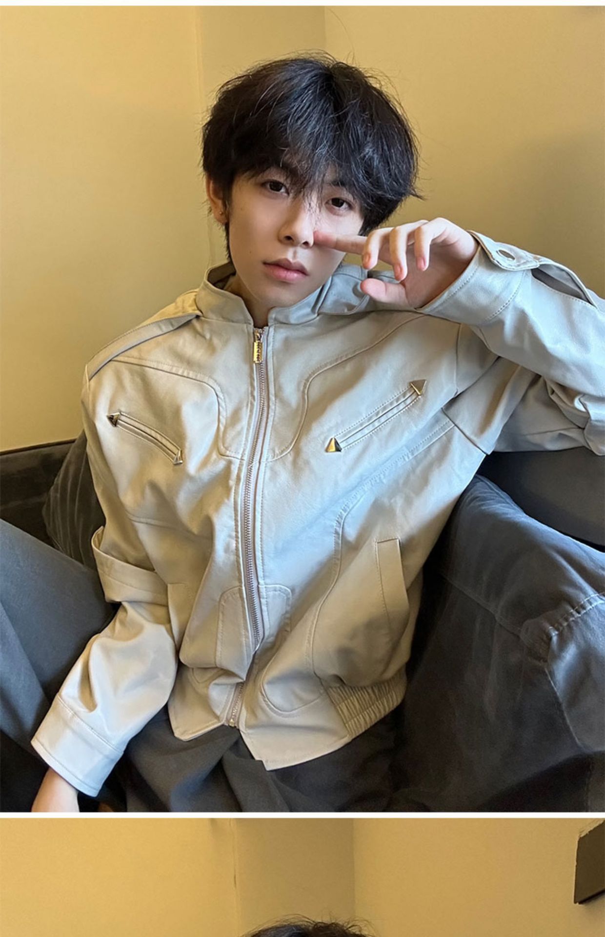클린 핏 짧은 가죽 자켓 남성용 하이 엔드 느낌 새로운 스타일 잘 생긴 미국 복고풍 비행가 재킷 봄과 가을스토어 가기