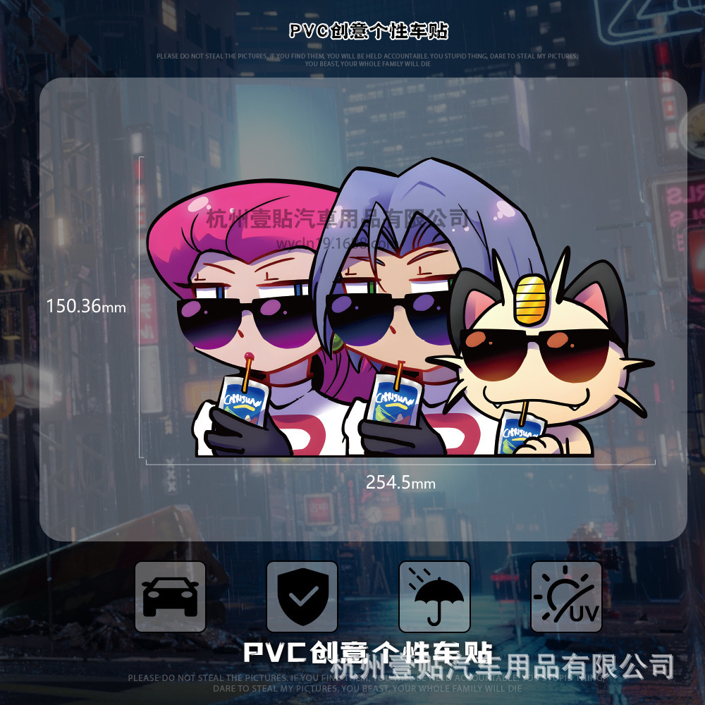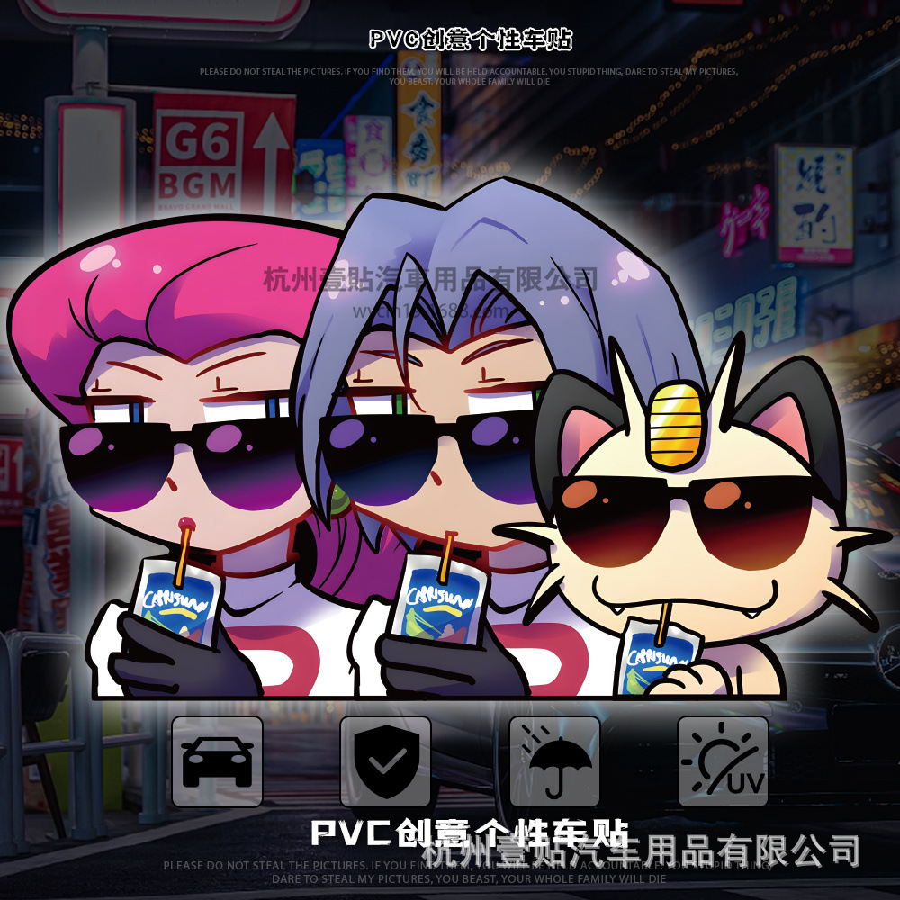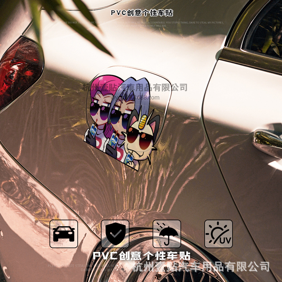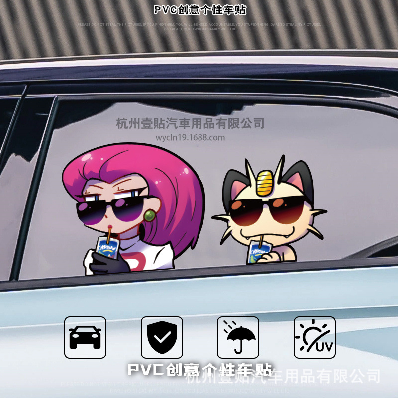 포켓몬 야옹 코지로 무사시 만화 애니메이션 반사 오토바이 자동차 스티커 자동차 스티커 후면 유리 스티커스토어 가기