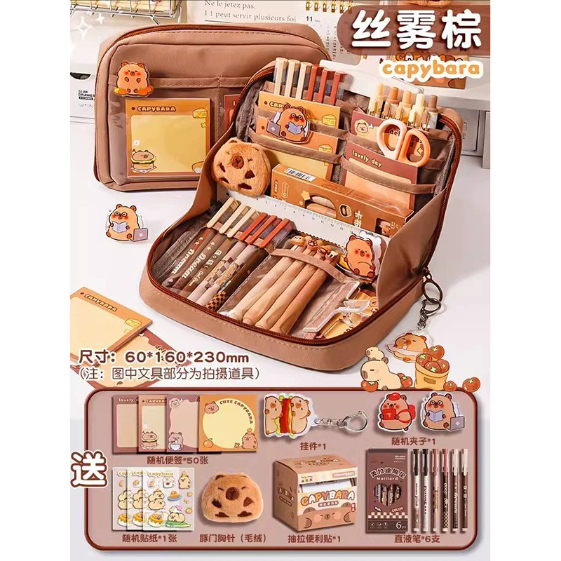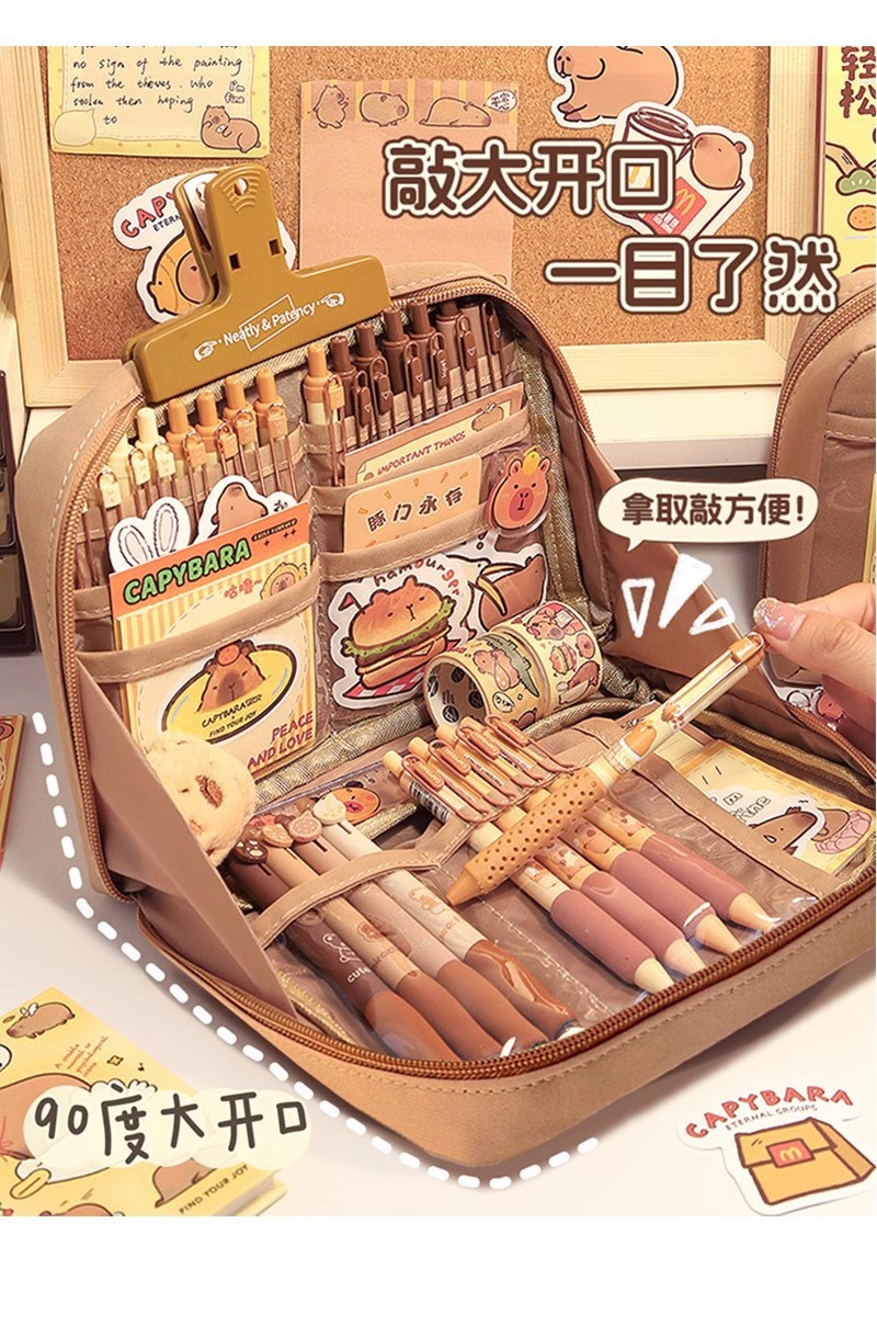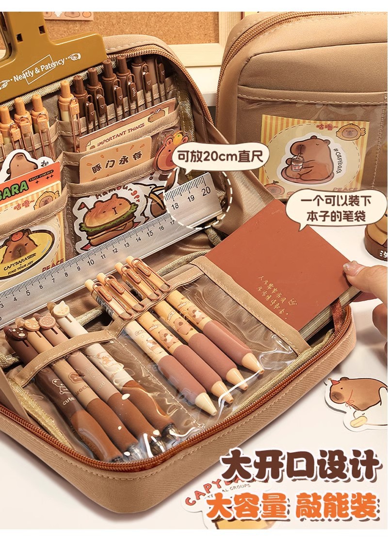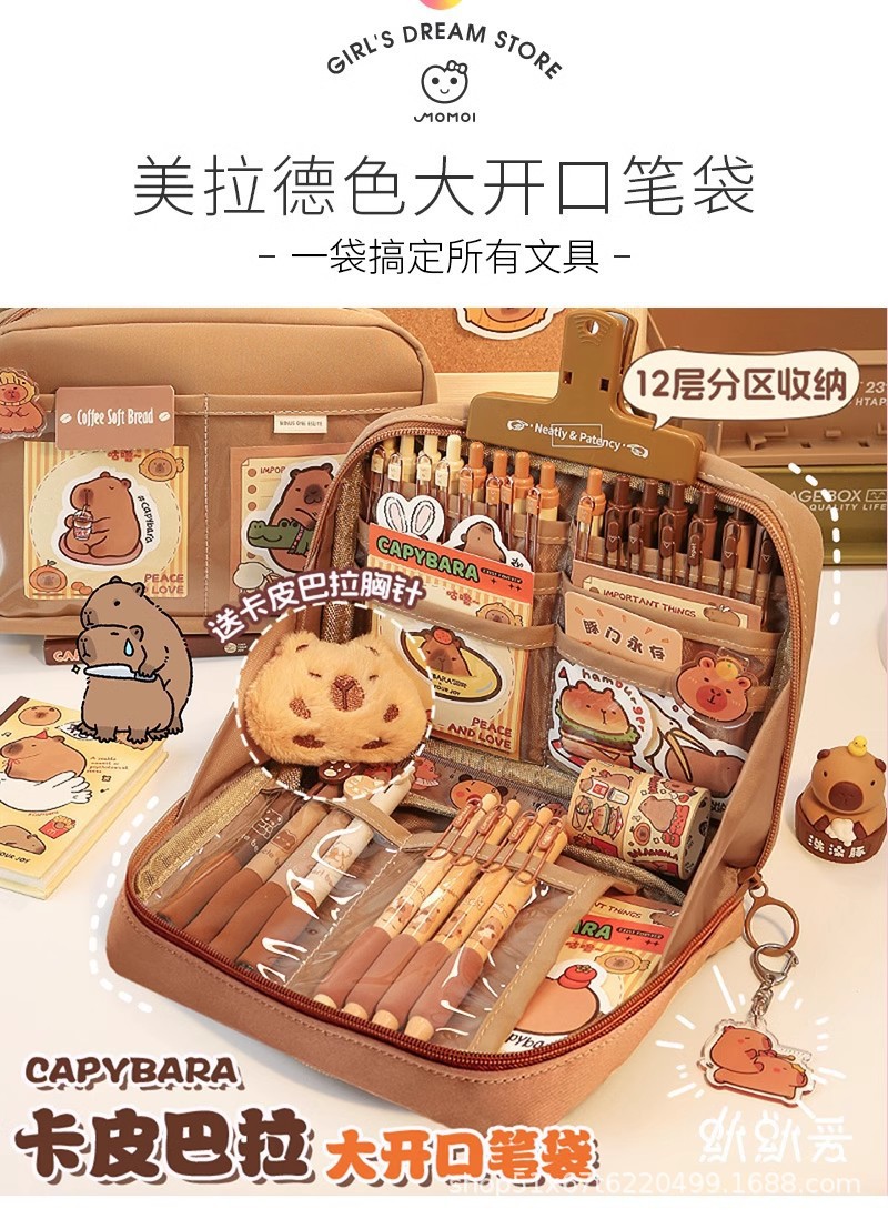 • 업그레이드된 두꺼워지고 얼룩이 지지 않는 12단 카피바라 필통 럭셔리 세트