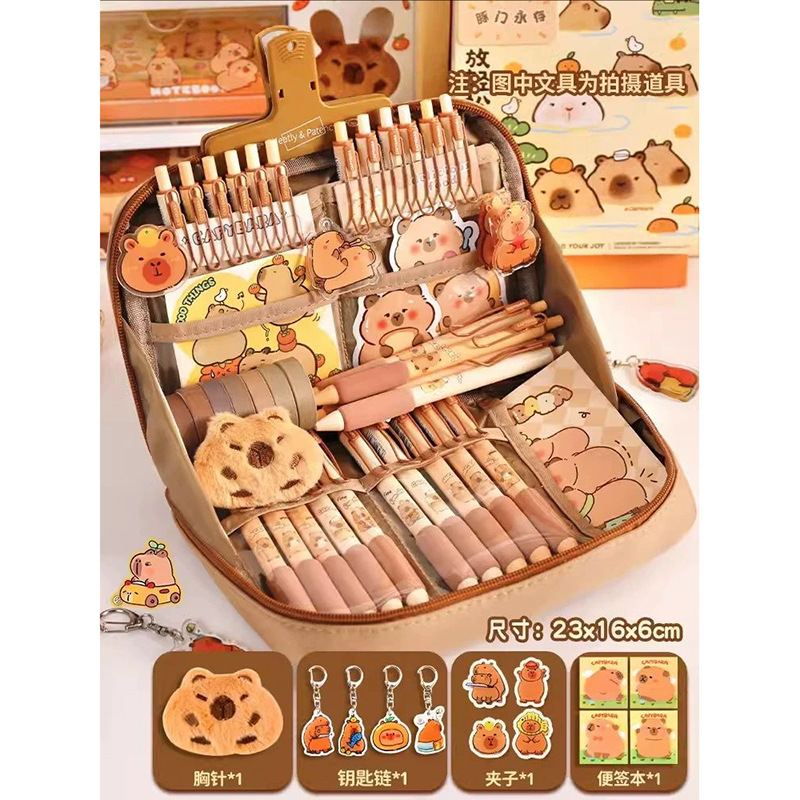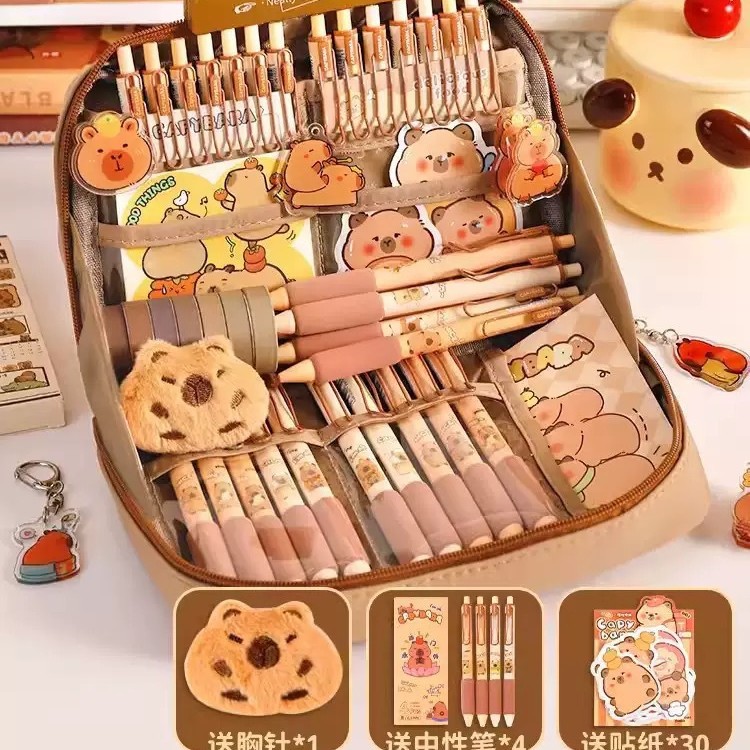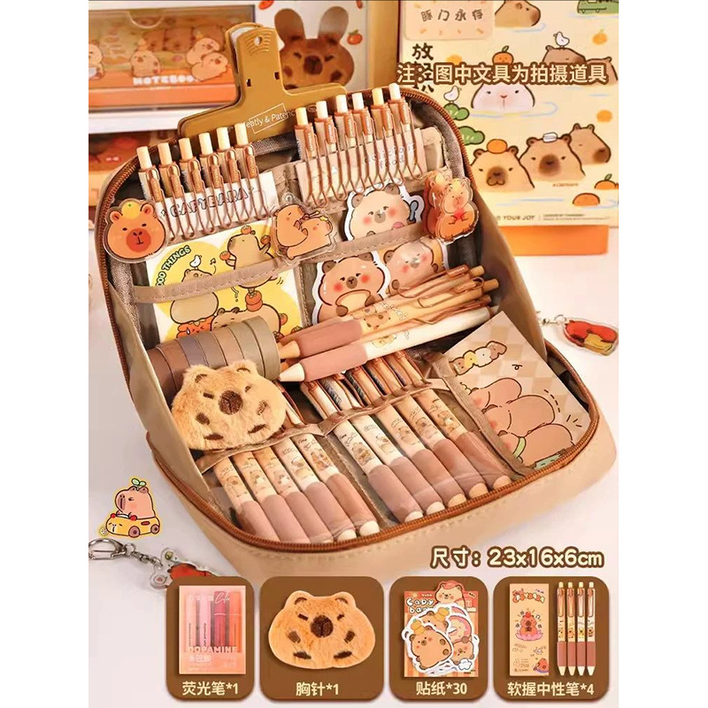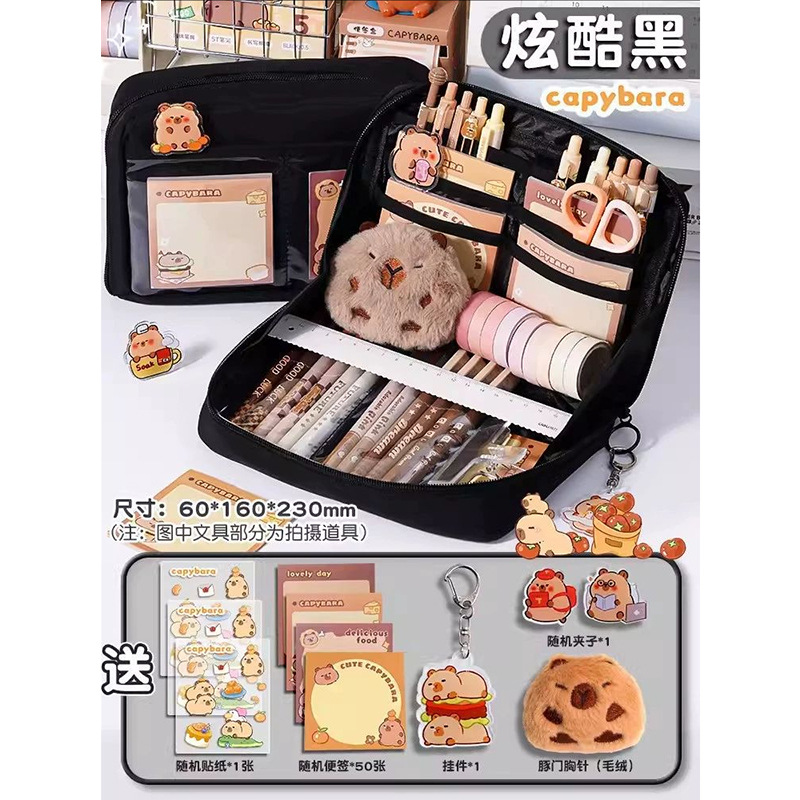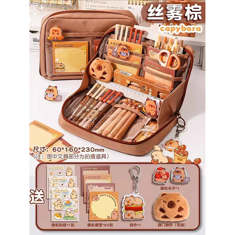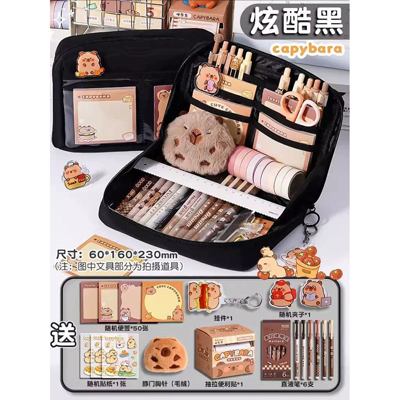 • 업그레이드된 두꺼워지고 얼룩이 지지 않는 12단 카피바라 필통 럭셔리 세트