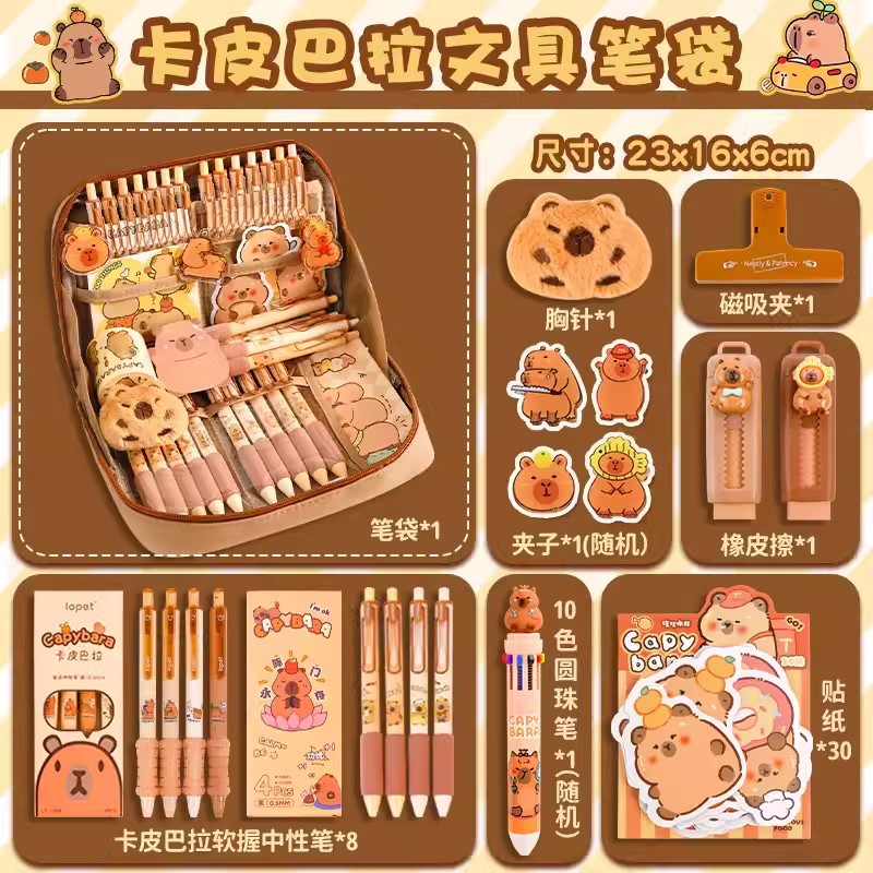 • 업그레이드된 두꺼워지고 얼룩이 지지 않는 12단 카피바라 필통 7종 세트