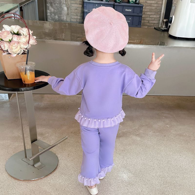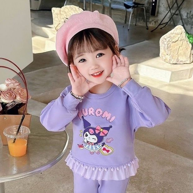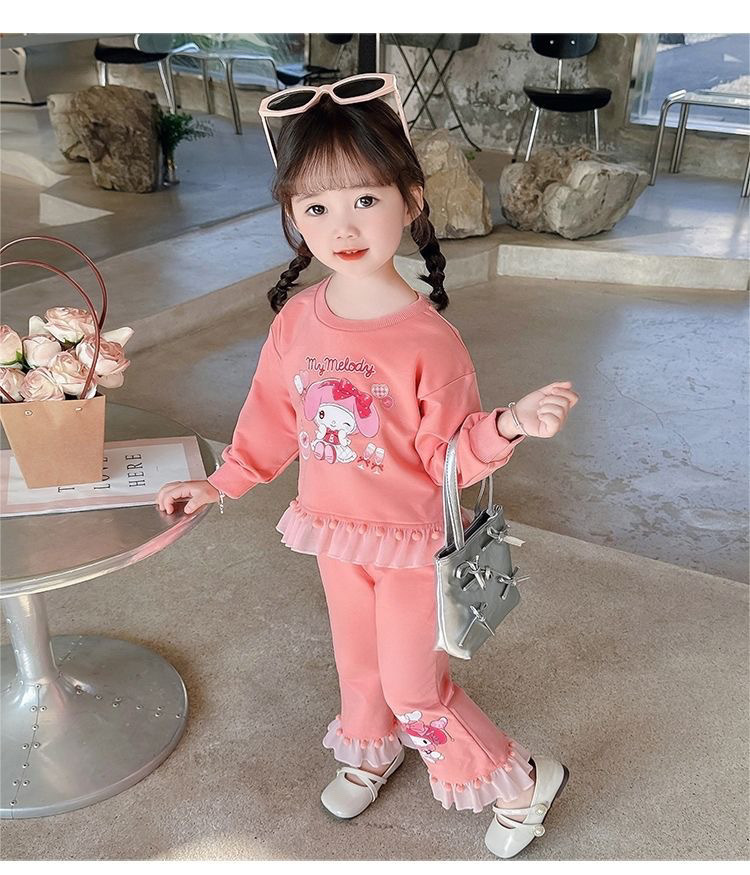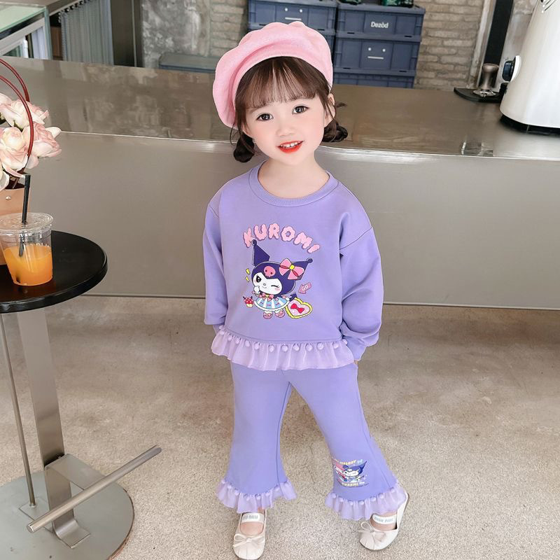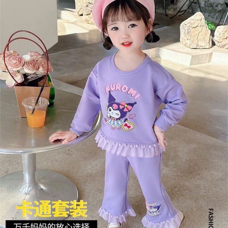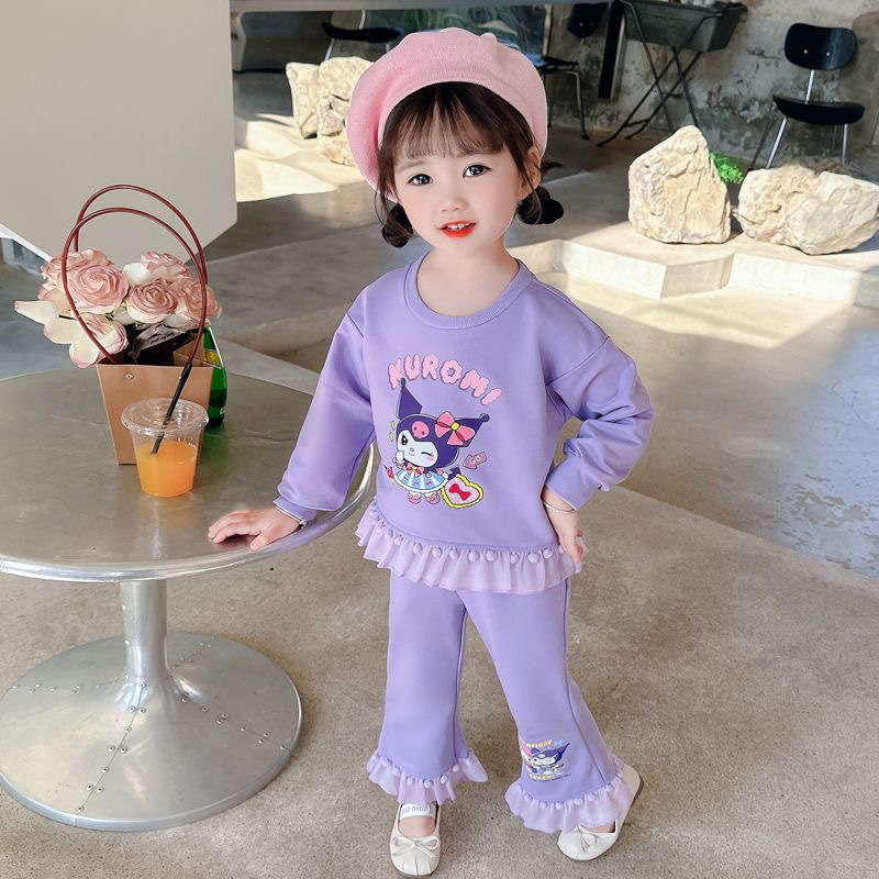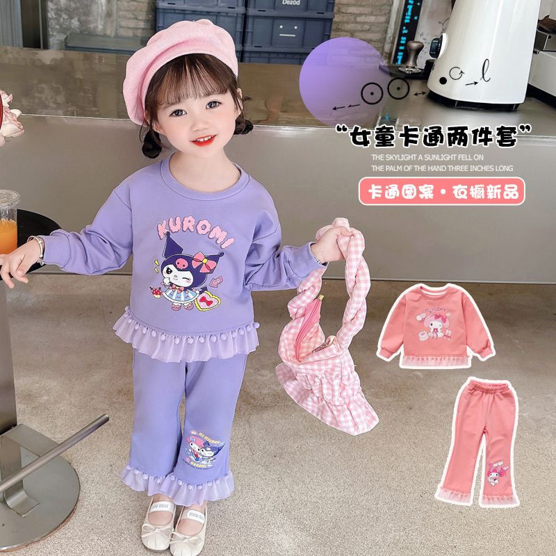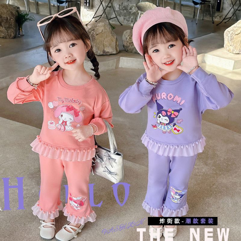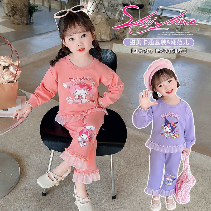 女童春秋套装美乐蒂库洛米2024款女孩洋气毛球花边长袖卫衣两件套