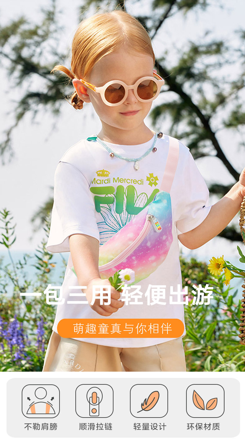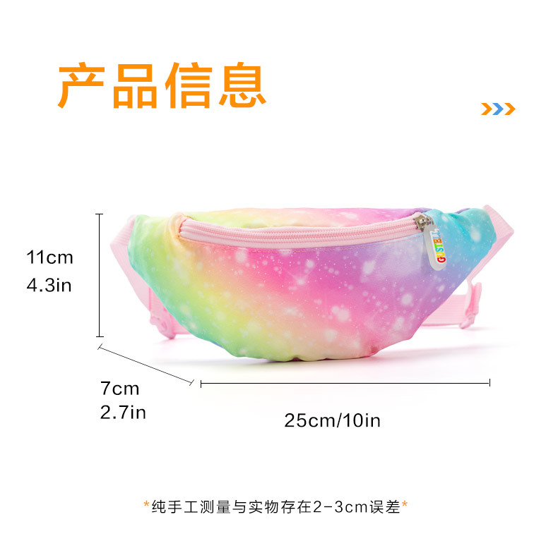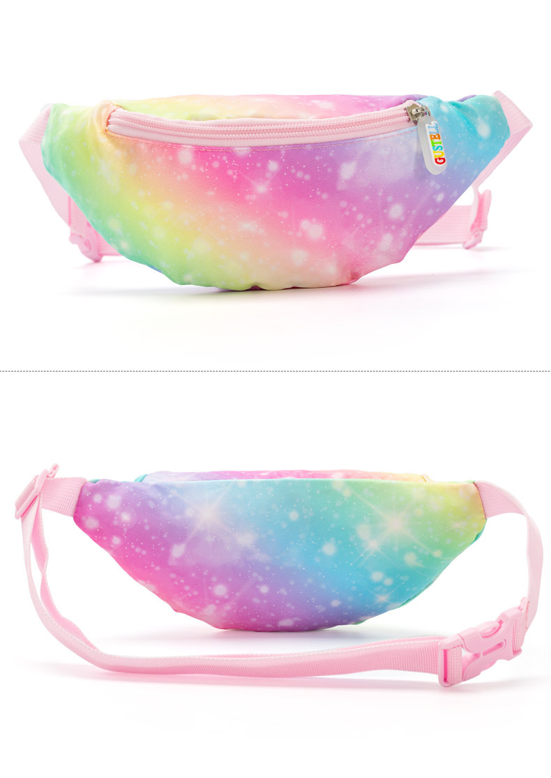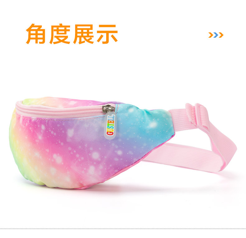 새로운 어린이 크로스 바디 백 다채로운 그라디언트 인쇄 소녀 캐주얼 허리 가방 옥스포드 천 경량 어린이 가슴 가방
