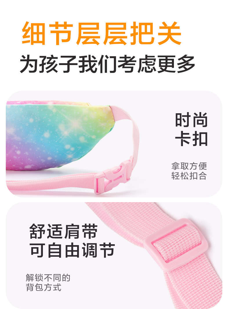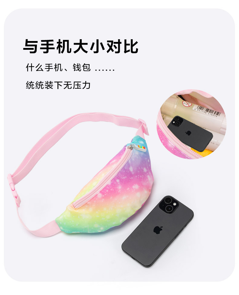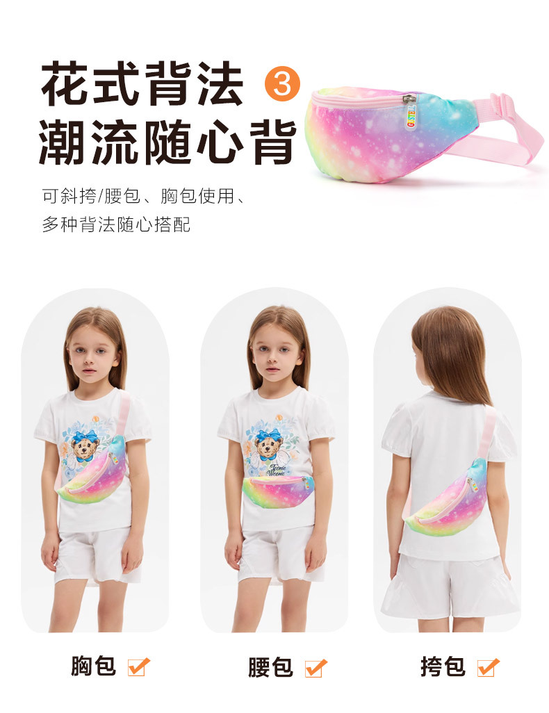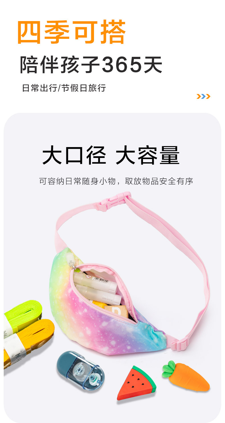 새로운 어린이 크로스 바디 백 다채로운 그라디언트 인쇄 소녀 캐주얼 허리 가방 옥스포드 천 경량 어린이 가슴 가방스토어 가기