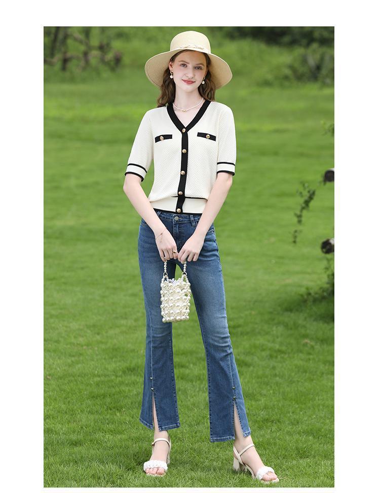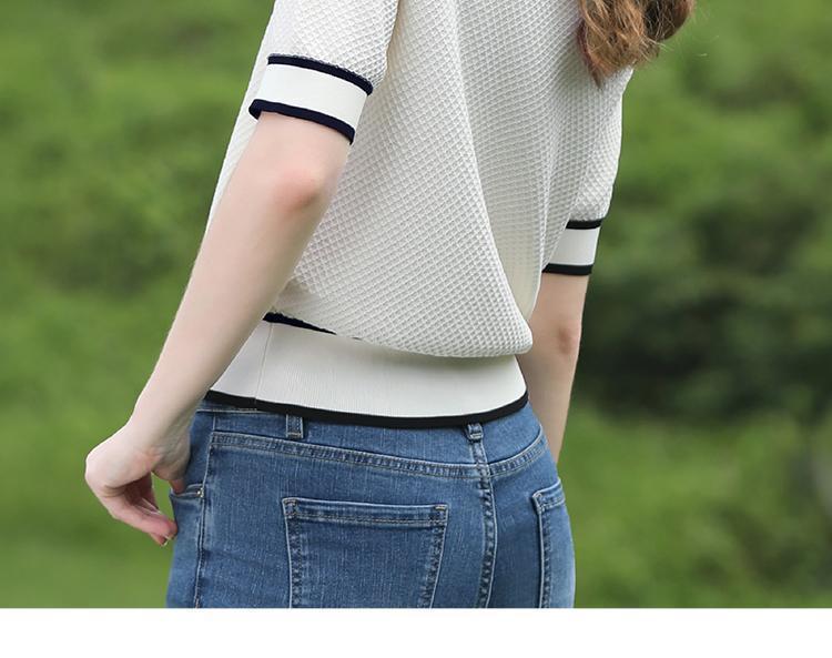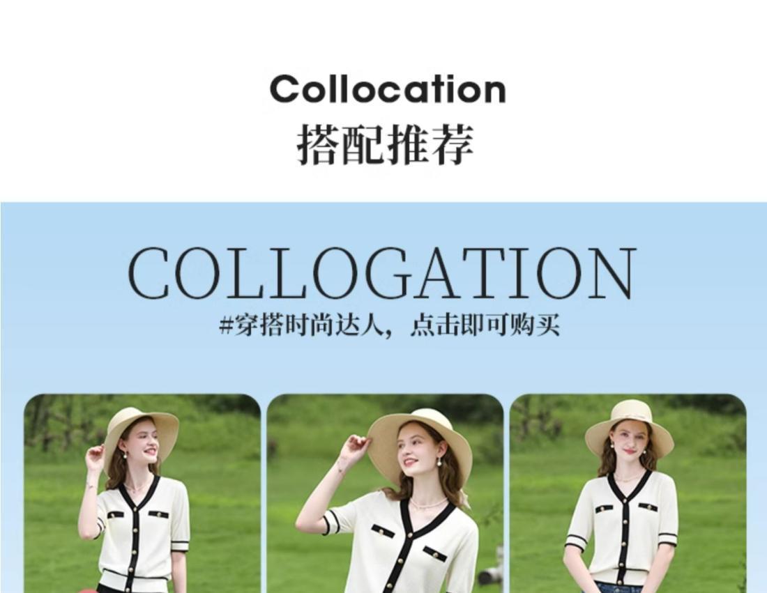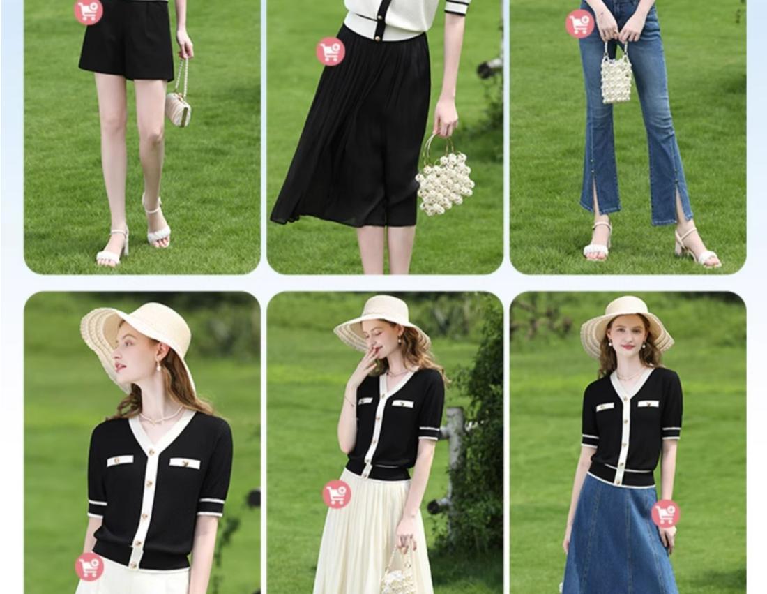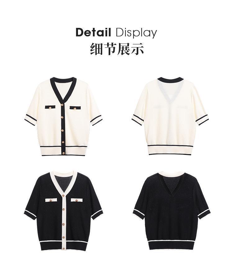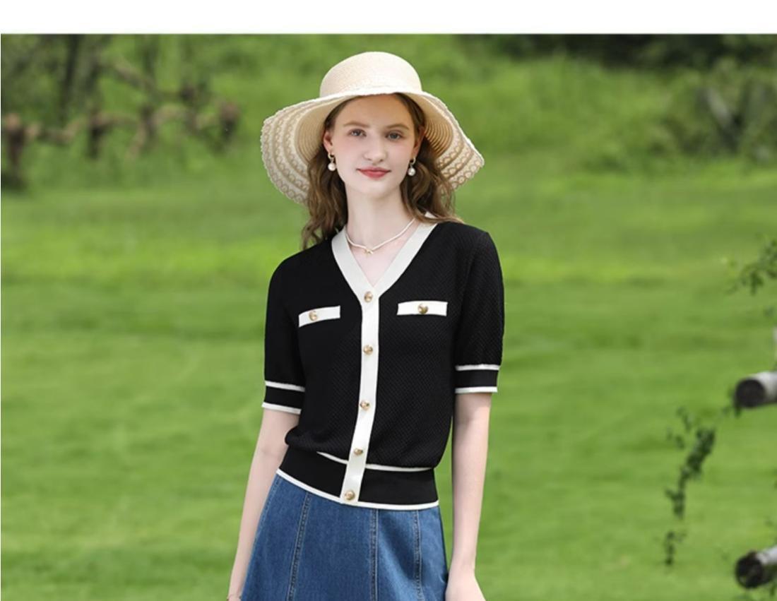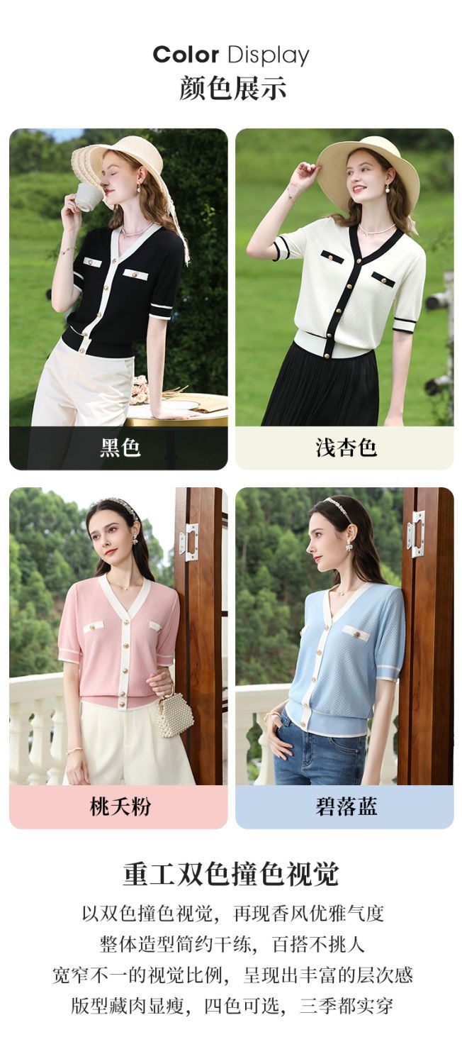 카운터 플러스 사이즈 텐셀 반팔 니트웨어 여성용 여름 새로운 V 넥 컬러 블록 카디건 얇은 루즈 탑스토어 가기