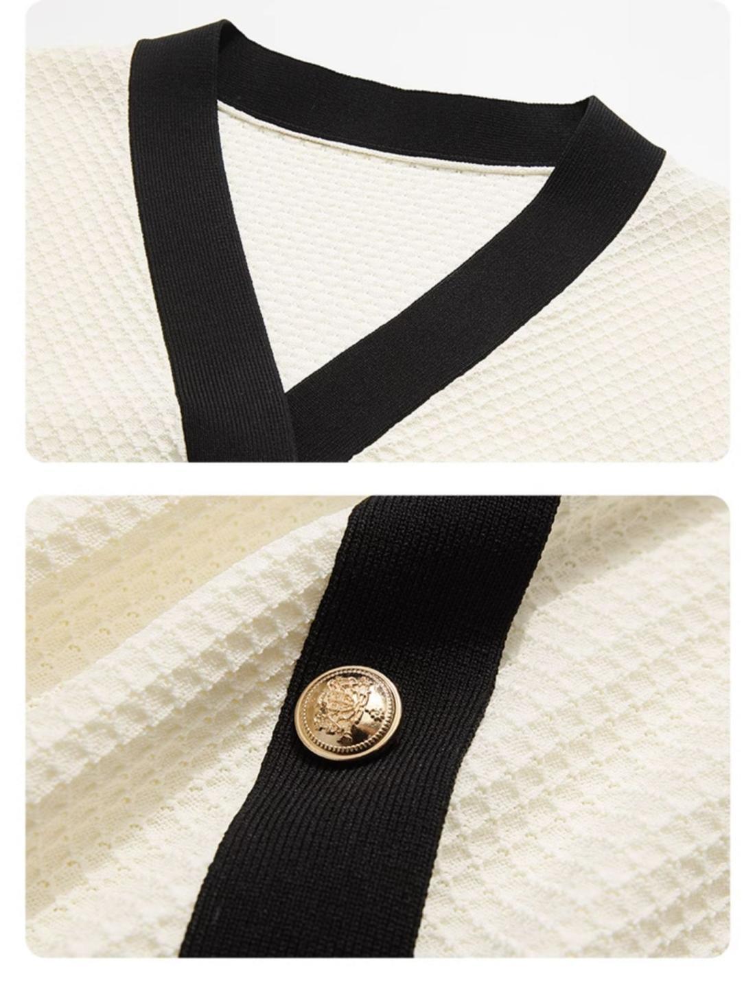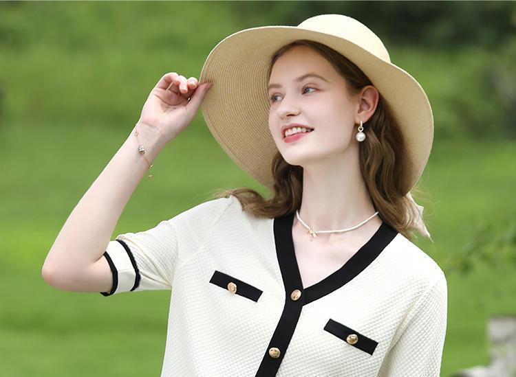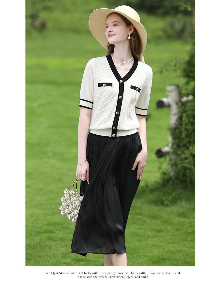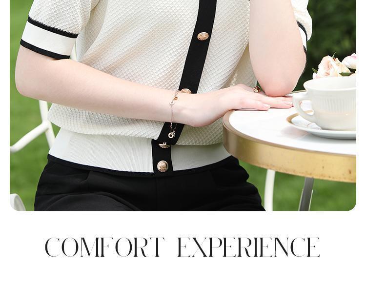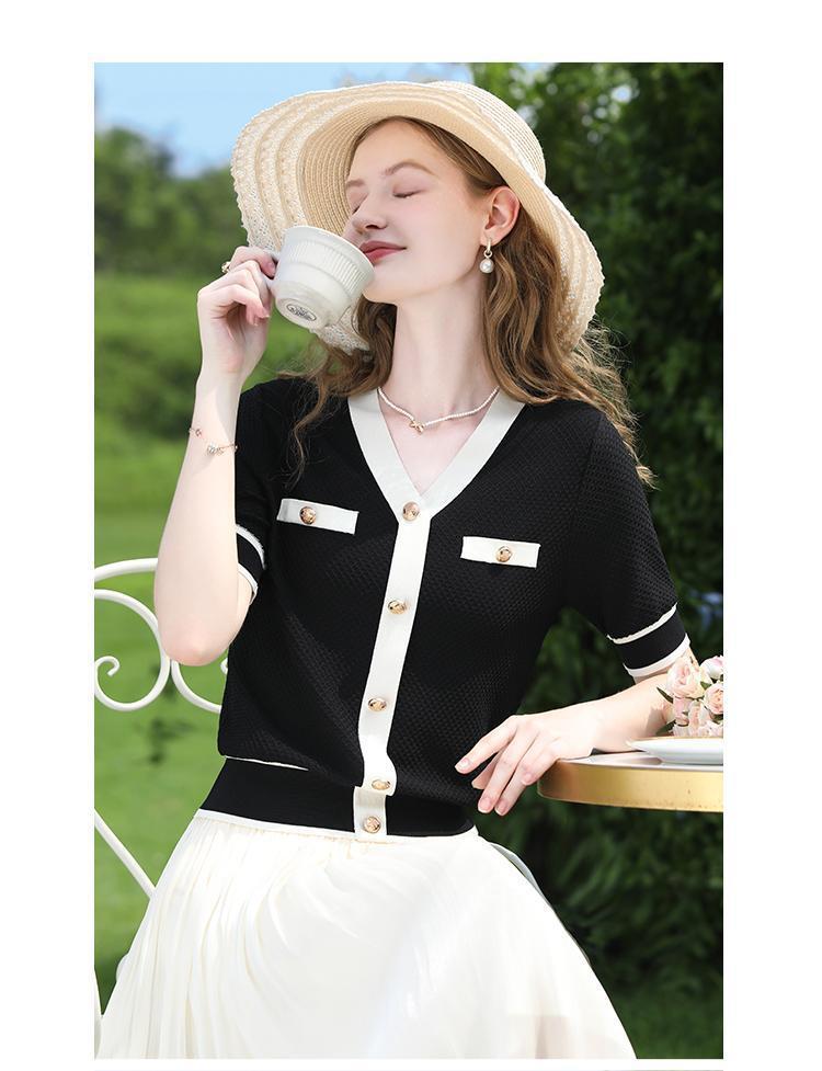 카운터 플러스 사이즈 텐셀 반팔 니트웨어 여성용 여름 새로운 V 넥 컬러 블록 카디건 얇은 루즈 탑