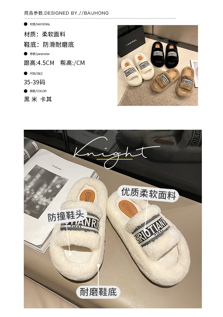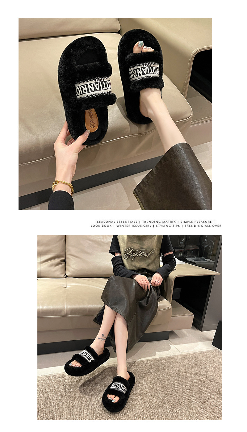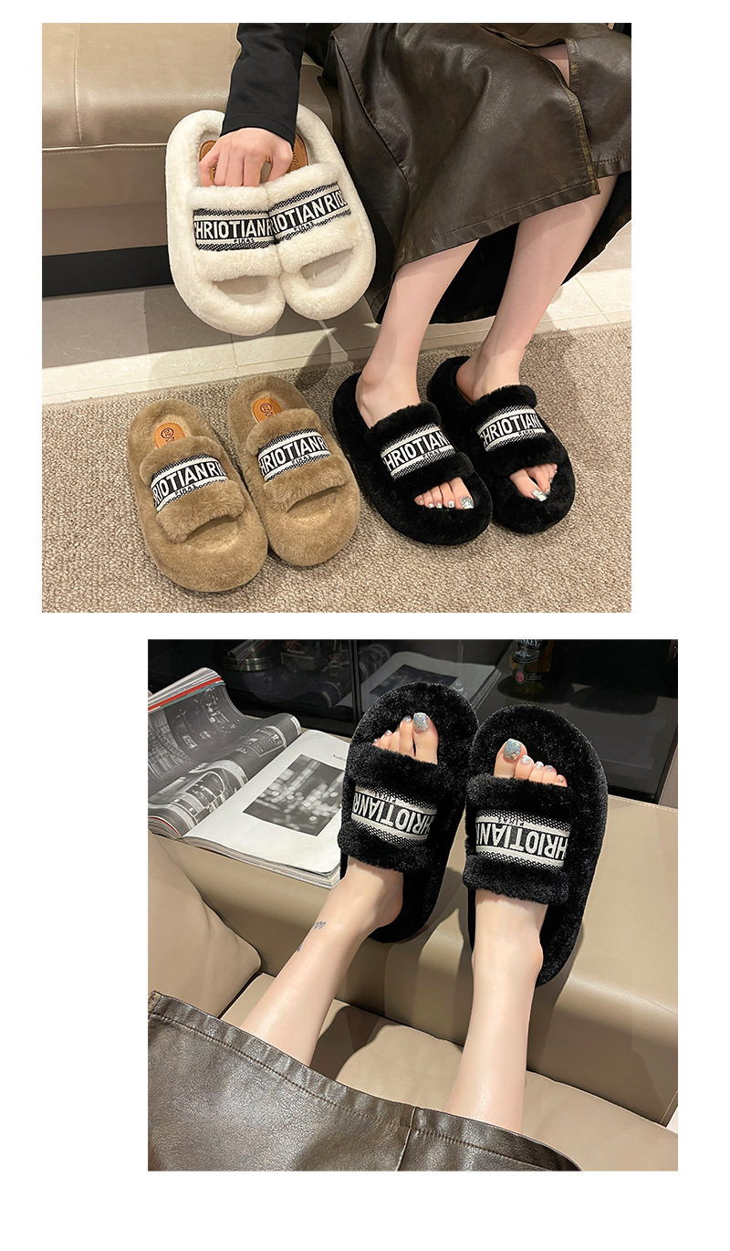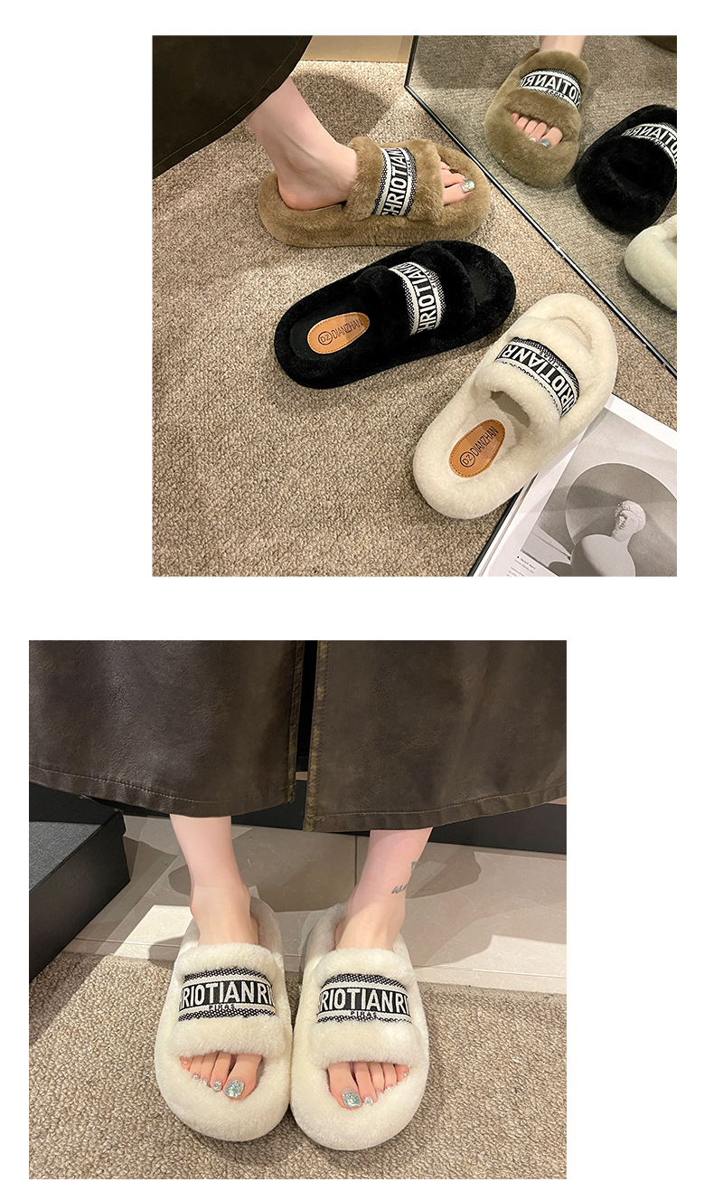 여성용 다용도 두꺼운 밑창 모피 슬리퍼, 레터 슬리퍼, 패셔너블한 고조 면 슬리퍼, 여성화, 봄 가을 고급 느낌스토어 가기