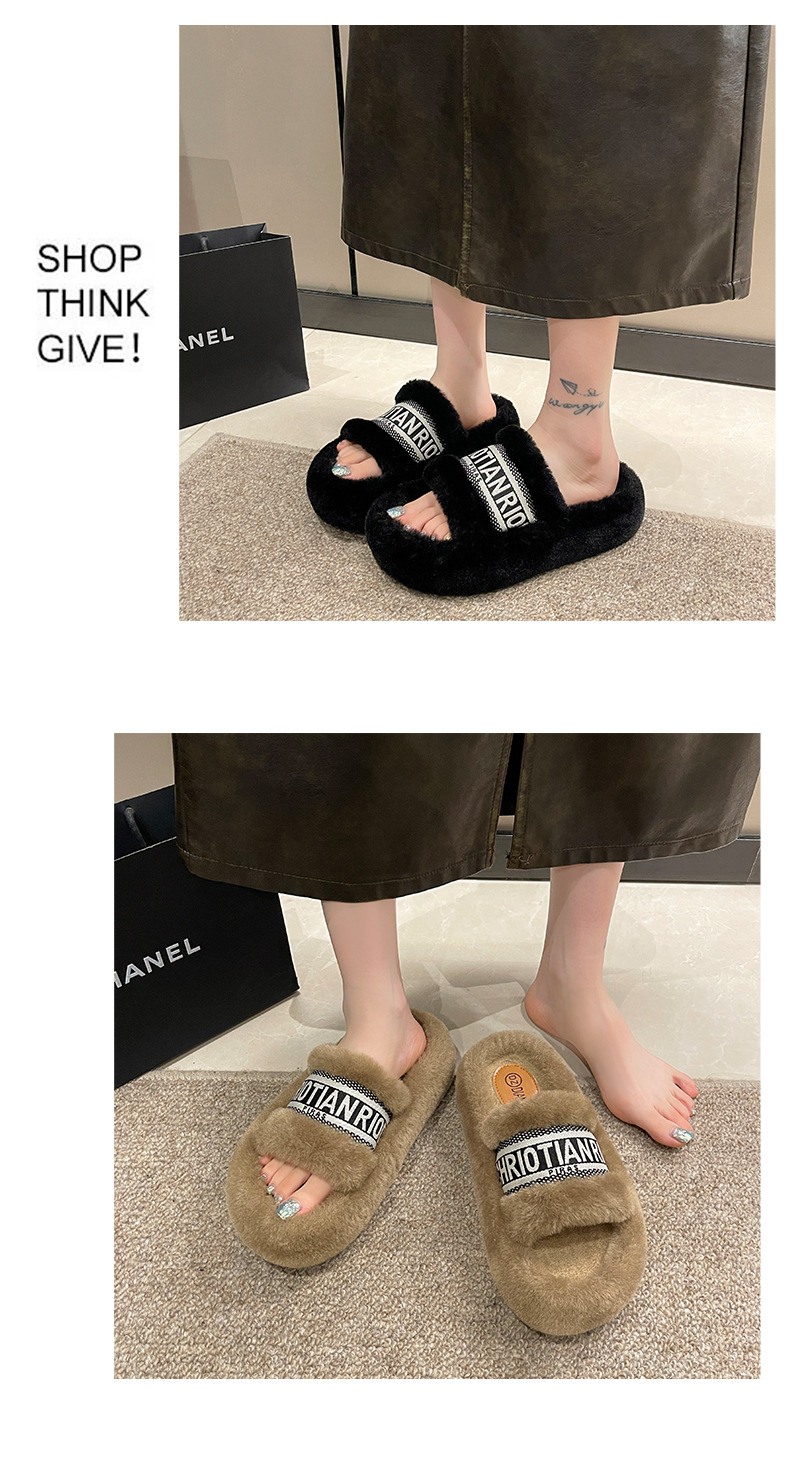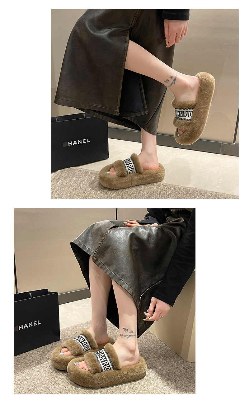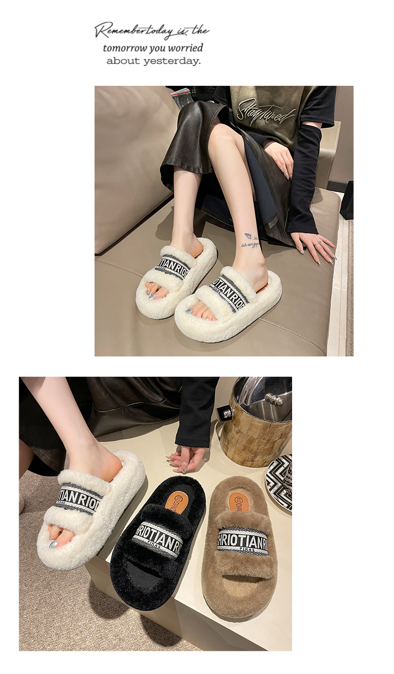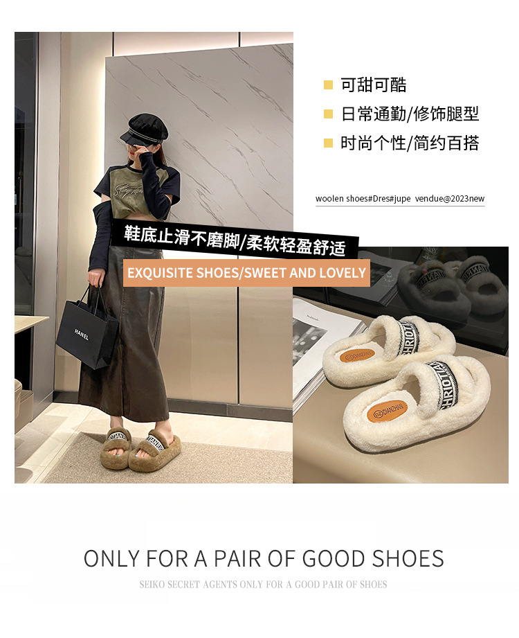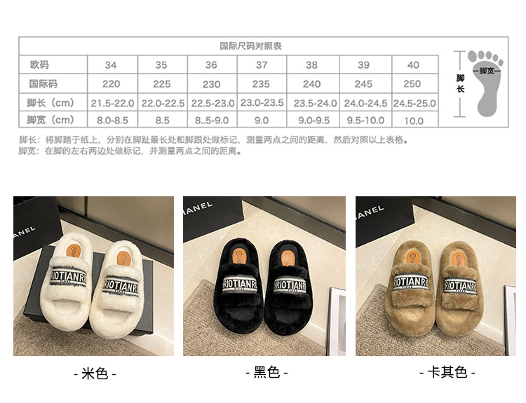 여성용 다용도 두꺼운 밑창 모피 슬리퍼, 레터 슬리퍼, 패셔너블한 고조 면 슬리퍼, 여성화, 봄 가을 고급 느낌스토어 가기