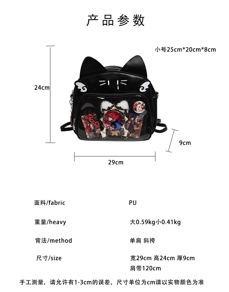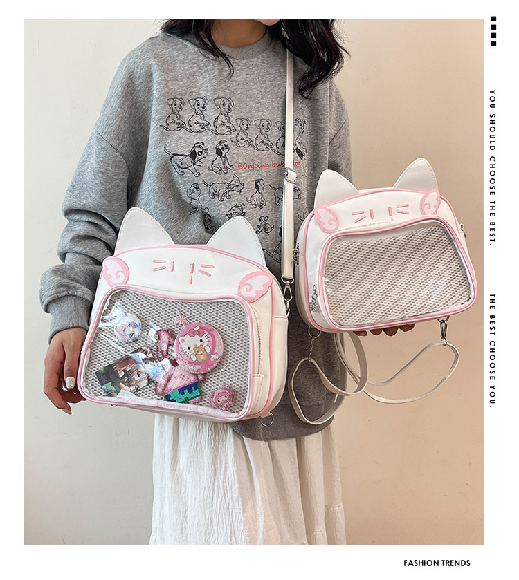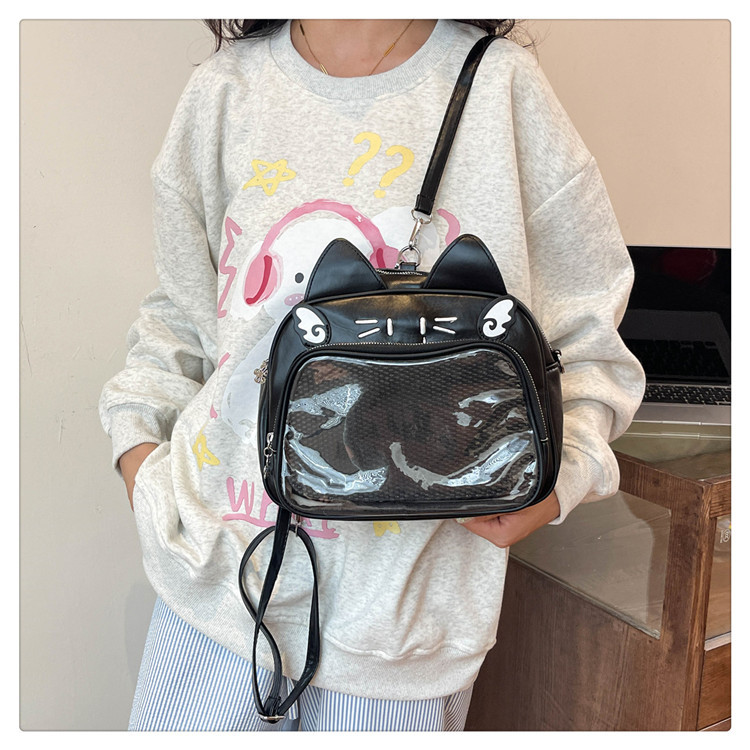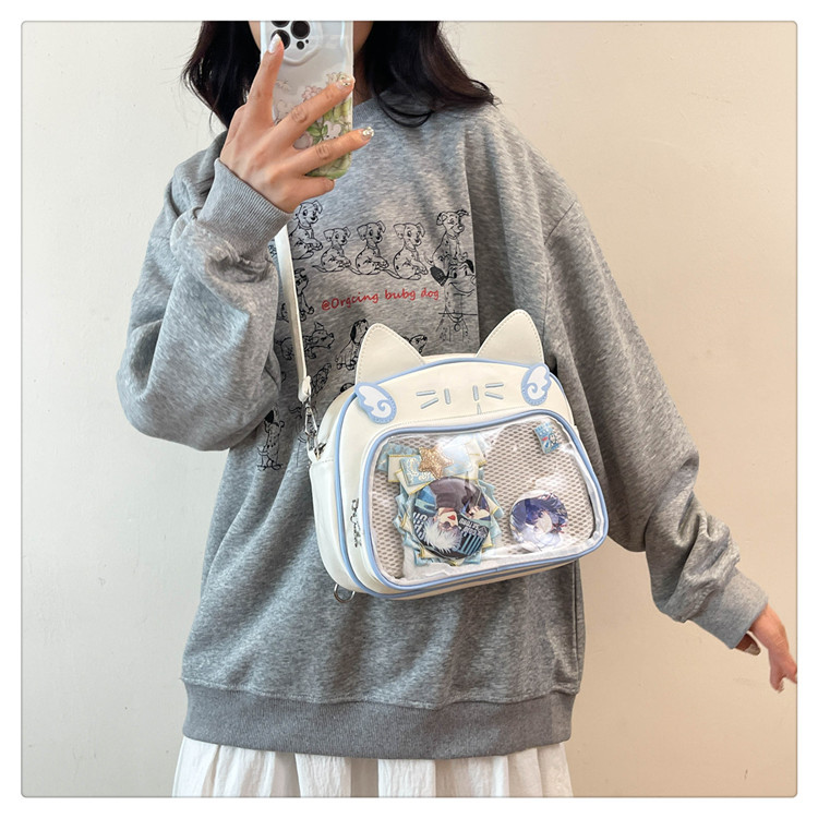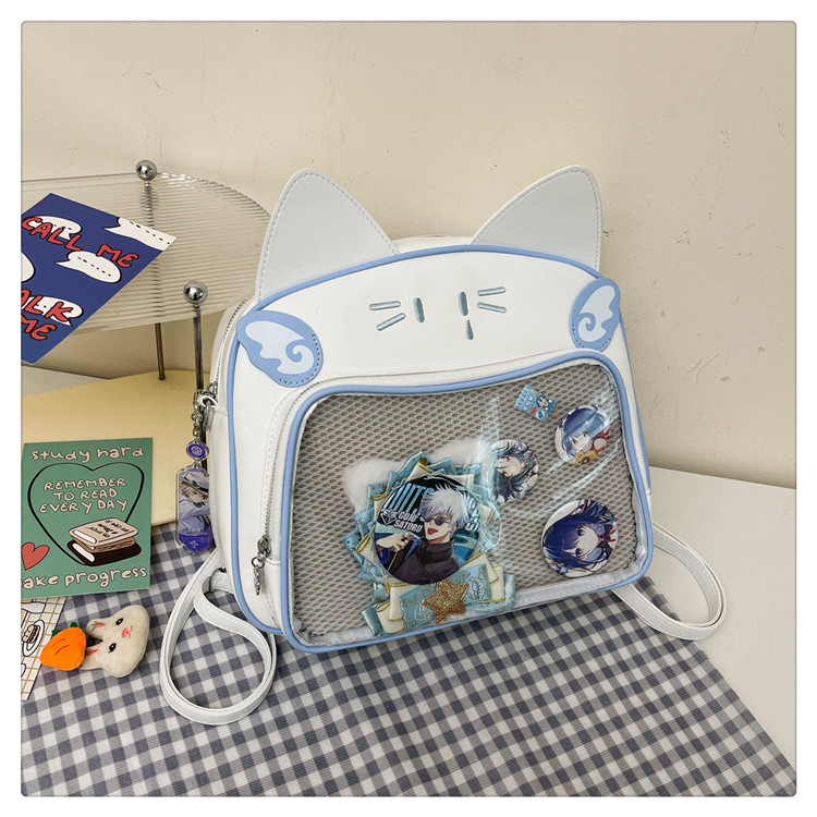 2 차원 슈퍼 파이어 만화 고양이 통증 가방 유행 폭발 투명 가방 밀레 배지 배낭 크로스 바디 가방 여성용 가방