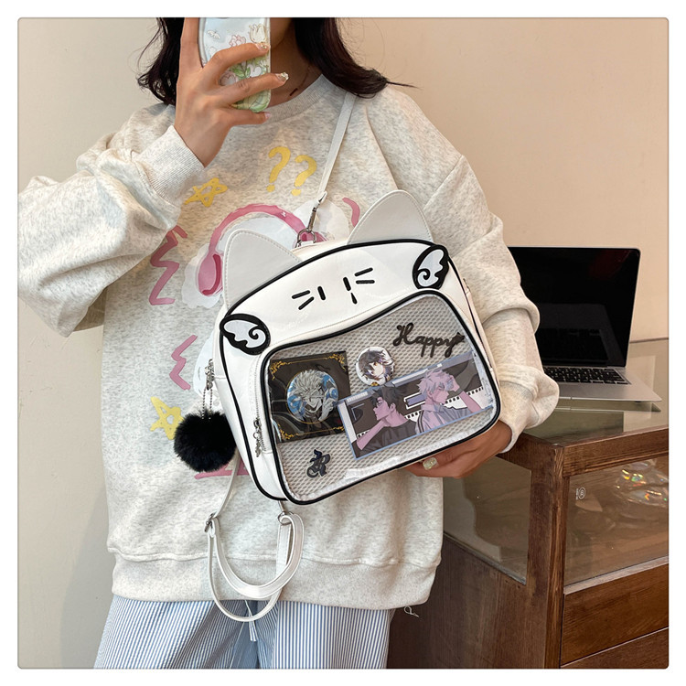 2 차원 슈퍼 파이어 만화 고양이 통증 가방 유행 폭발 투명 가방 밀레 배지 배낭 크로스 바디 가방 여성용 가방스토어 가기