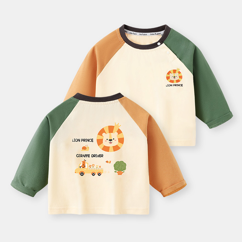 2024 가을 새 아기 옷 캐주얼 라글란 긴팔 티셔츠 컬러 매칭 봄과 가을 아기 탑베이스 셔츠스토어 가기