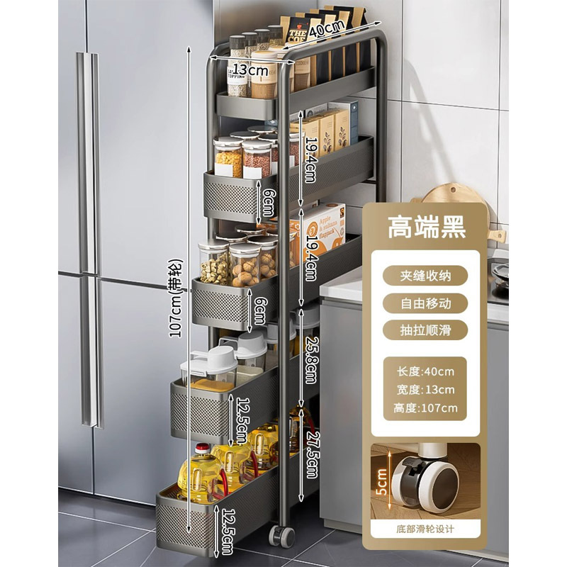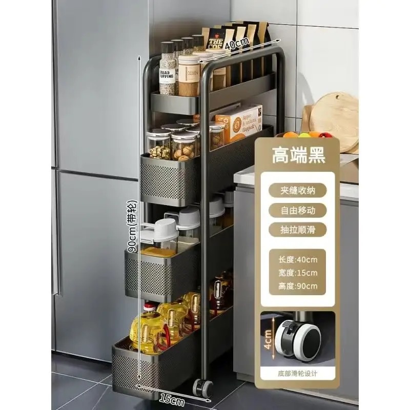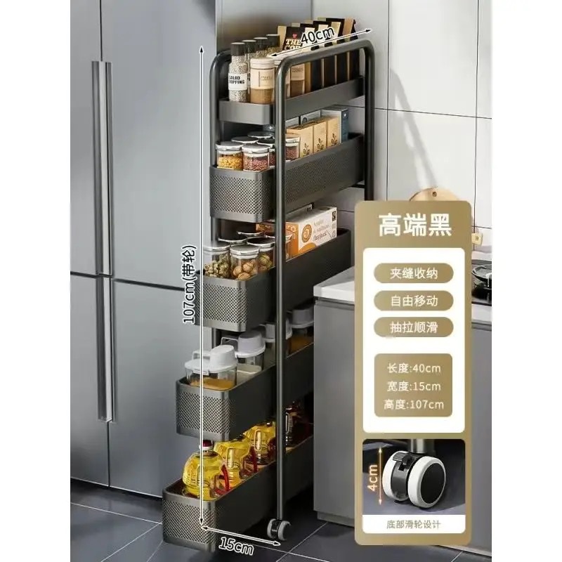 • 인출형 - 15폭 [검정색] 5단 * 스테인레스 스틸 트랙(바퀴 조절 가능 16-17-18cm)