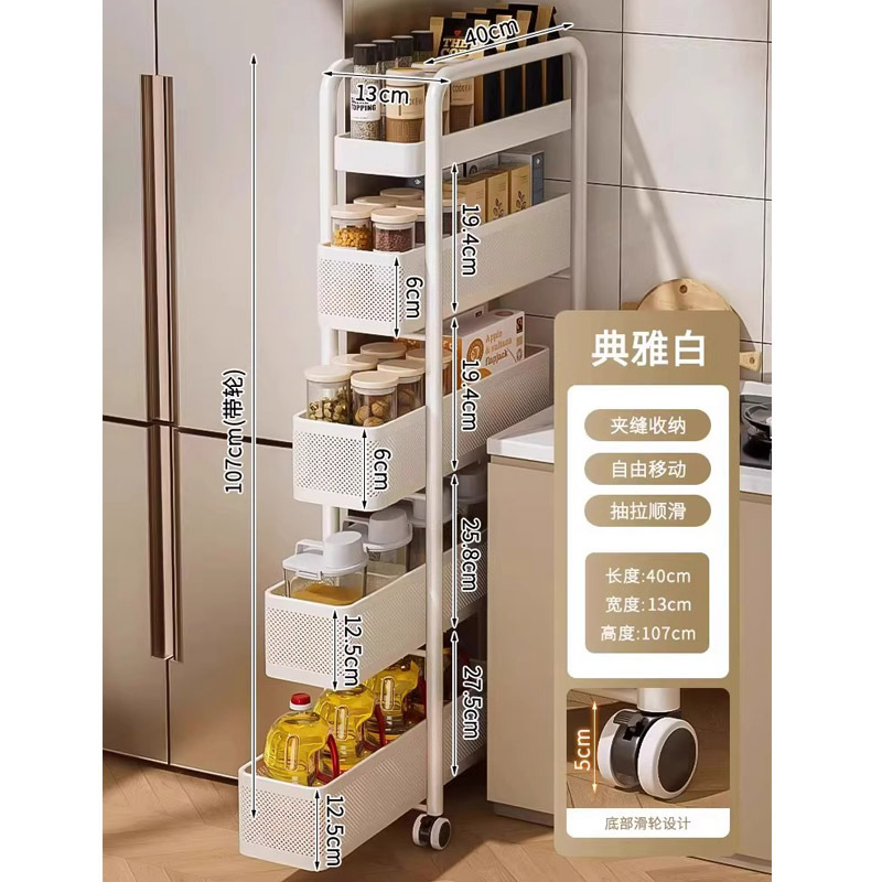 • 인출형 - 15폭 [밀크화이트] 5단 * 스테인레스 트랙(바퀴 조절 가능 16-17-18cm)