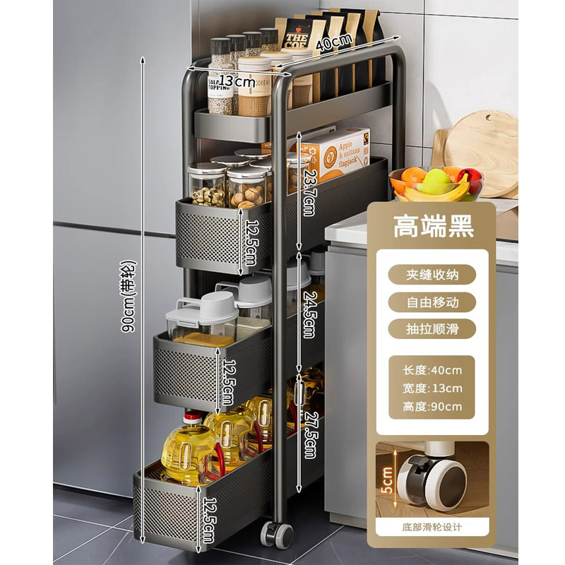 • 인출식 - 13폭 [블랙] 4단 (바퀴로 13-14-15cm 조절 가능)