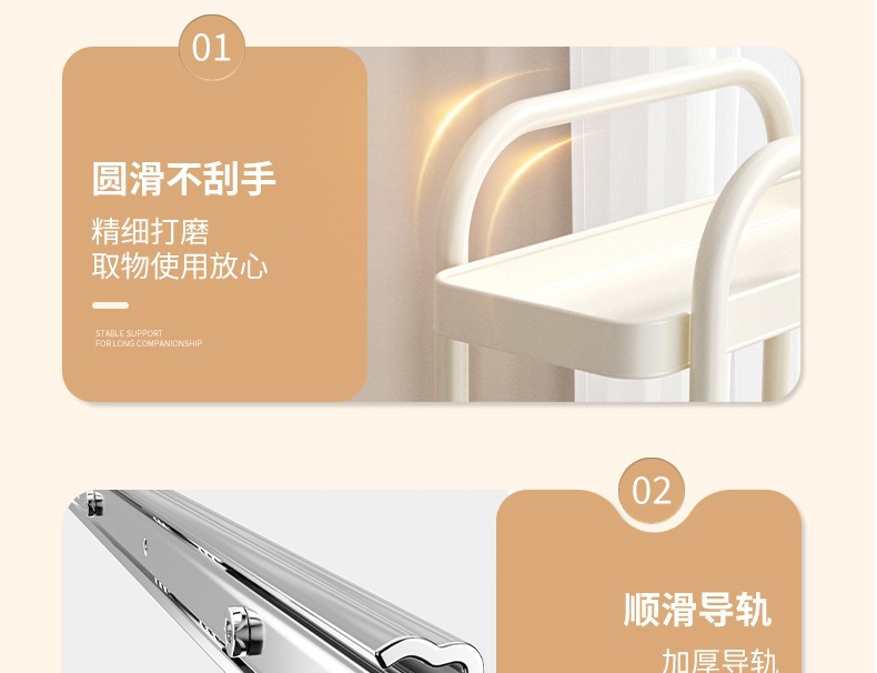 • 인출형 - 21폭 [밀크화이트] 3단 * 스테인레스 트랙 (바퀴 조절 가능 21-22-23cm)