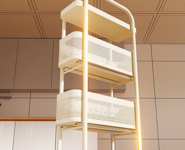 • 인출형 - 21폭 [밀크화이트] 4단 * 스테인레스 트랙 (바퀴 조절 가능 21-22-23cm)