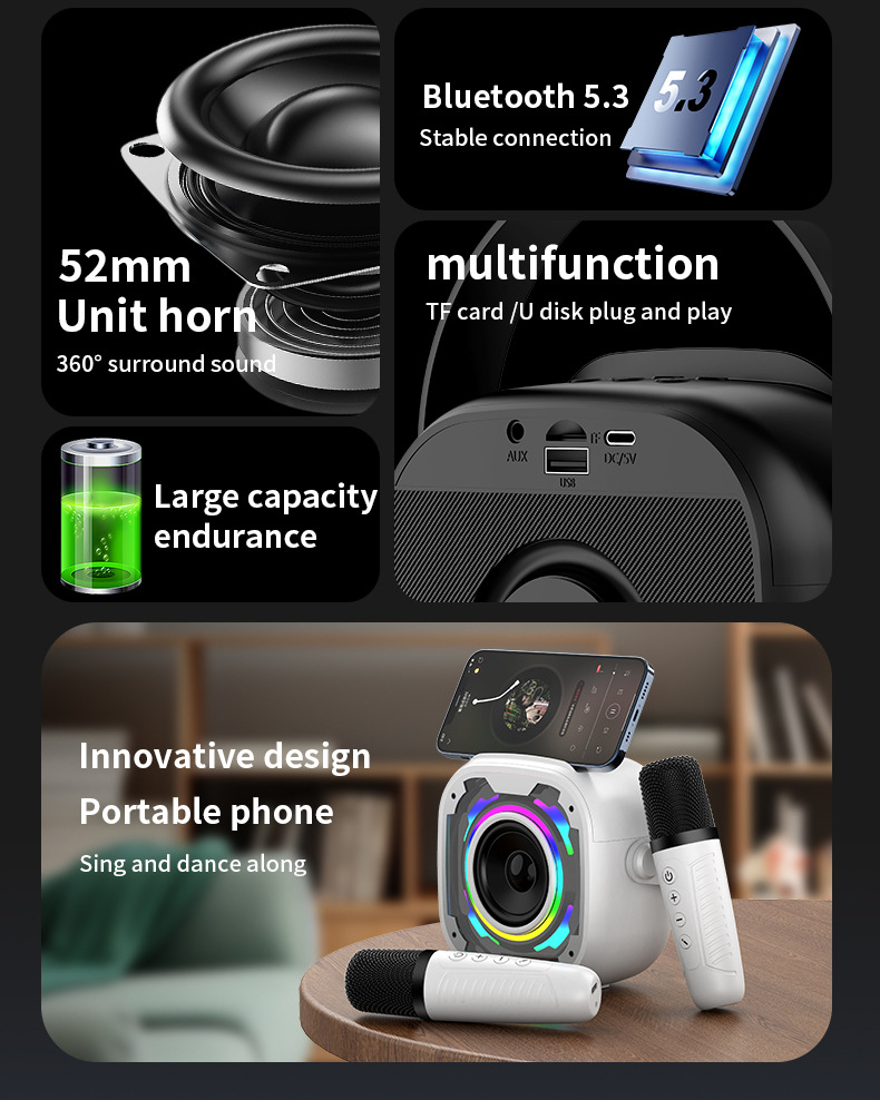 국경 새로운 개인 모델 노래방 보물 블루투스 스피커 v11 무선 노래방 통합 오디오 휴대용 미니 야외 선물스토어 가기