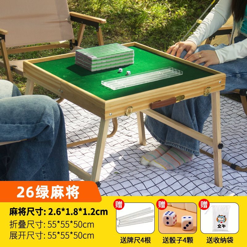 • 26#푸른 잔디 여행 마작 세트 [휴대용 마작 테이블 + 무료 주사위/자/카드