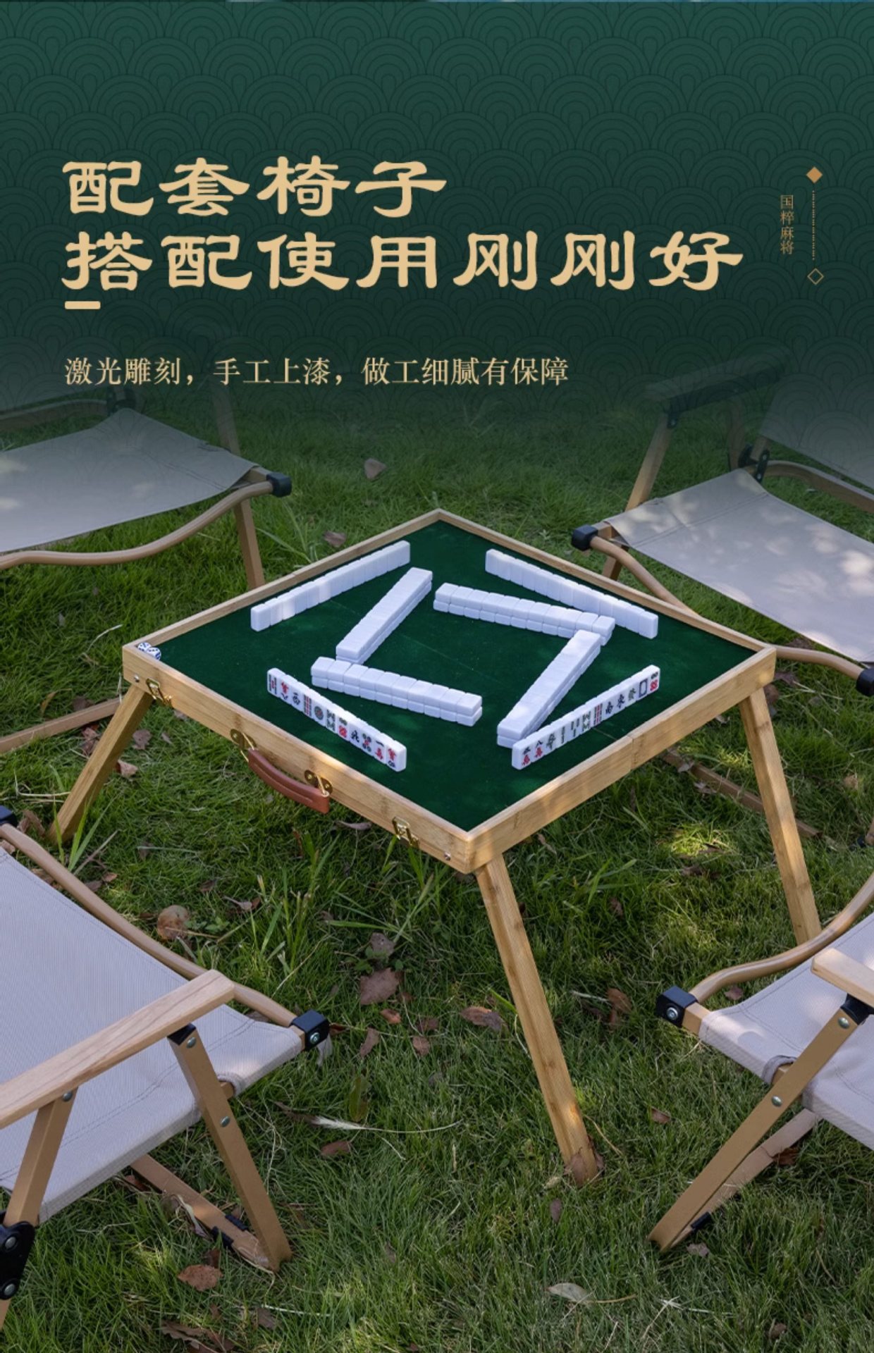 • 30#푸른 잔디 여행 마작 세트 [휴대용 마작 테이블 + 무료 주사위/자/카드