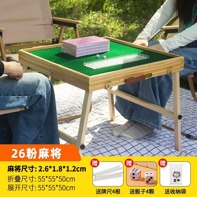 • 26#체리 핑크 여행 마작 세트 [휴대용 마작 테이블 + 무료 주사위/카드 자/카드