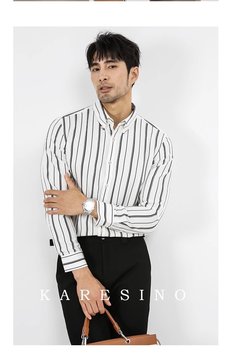 봄과 여름 고급 디자인 센스 수직 스트라이프 셔츠 남성 원피스 비즈니스 남성 주름 방지 비 다림질 캐주얼 긴팔 셔츠스토어 가기