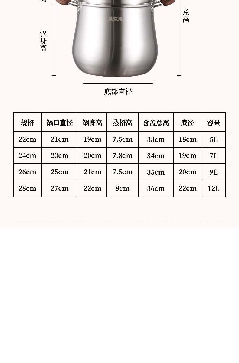 • 316 스틸 특대 국물 냄비 22cm + 찜