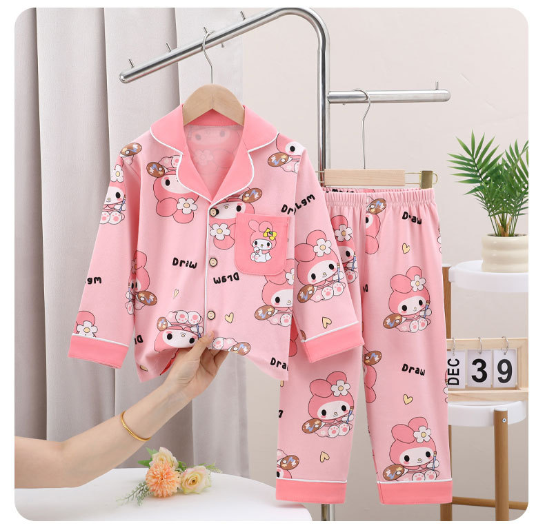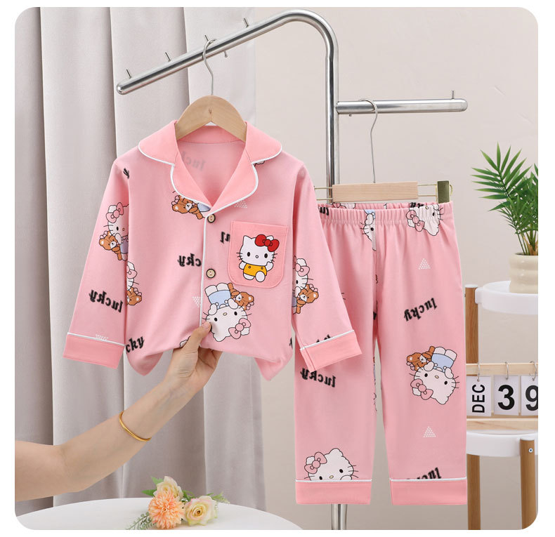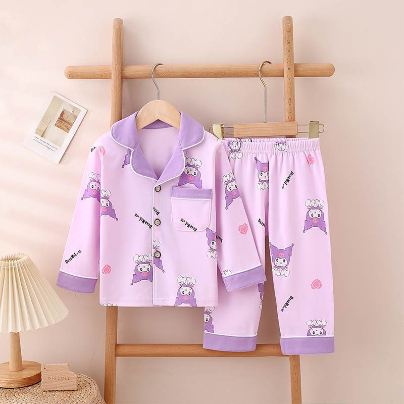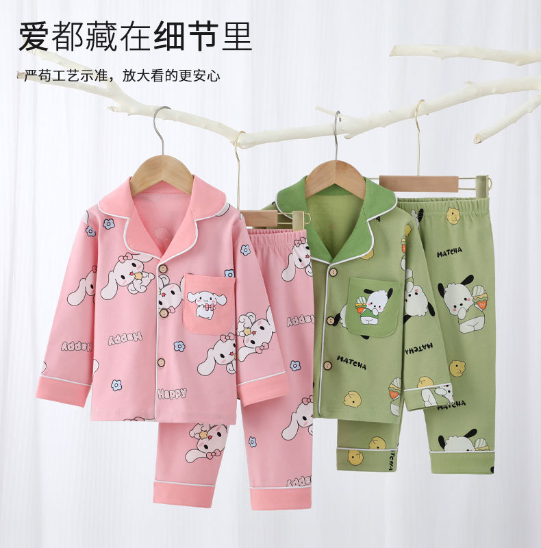 어린이 잠옷 세트 남아 여아 봄 가을 한국 스타일 중대형 어린이 면 소재 외출복 학생 가을 스타일 만화 패턴