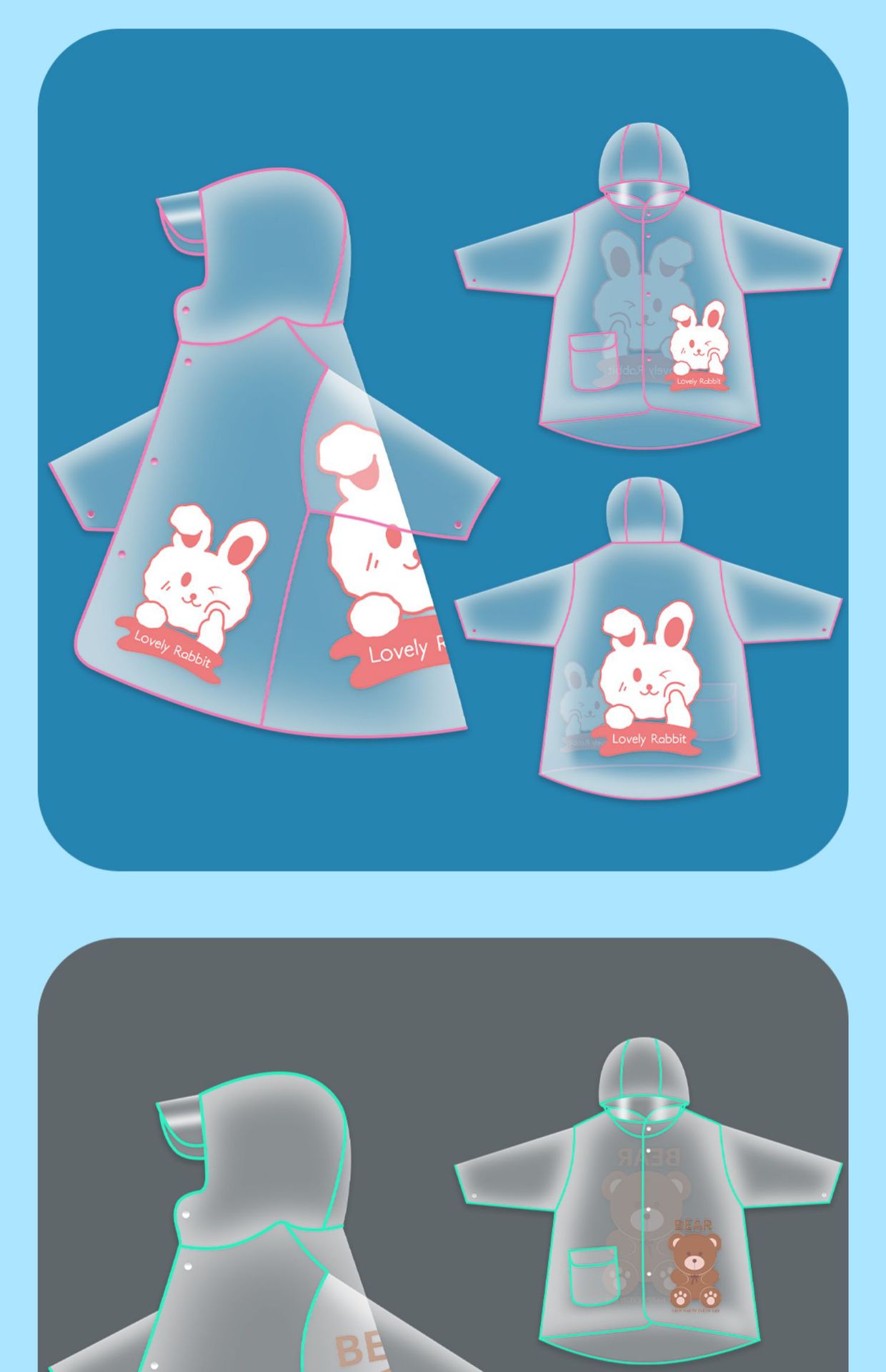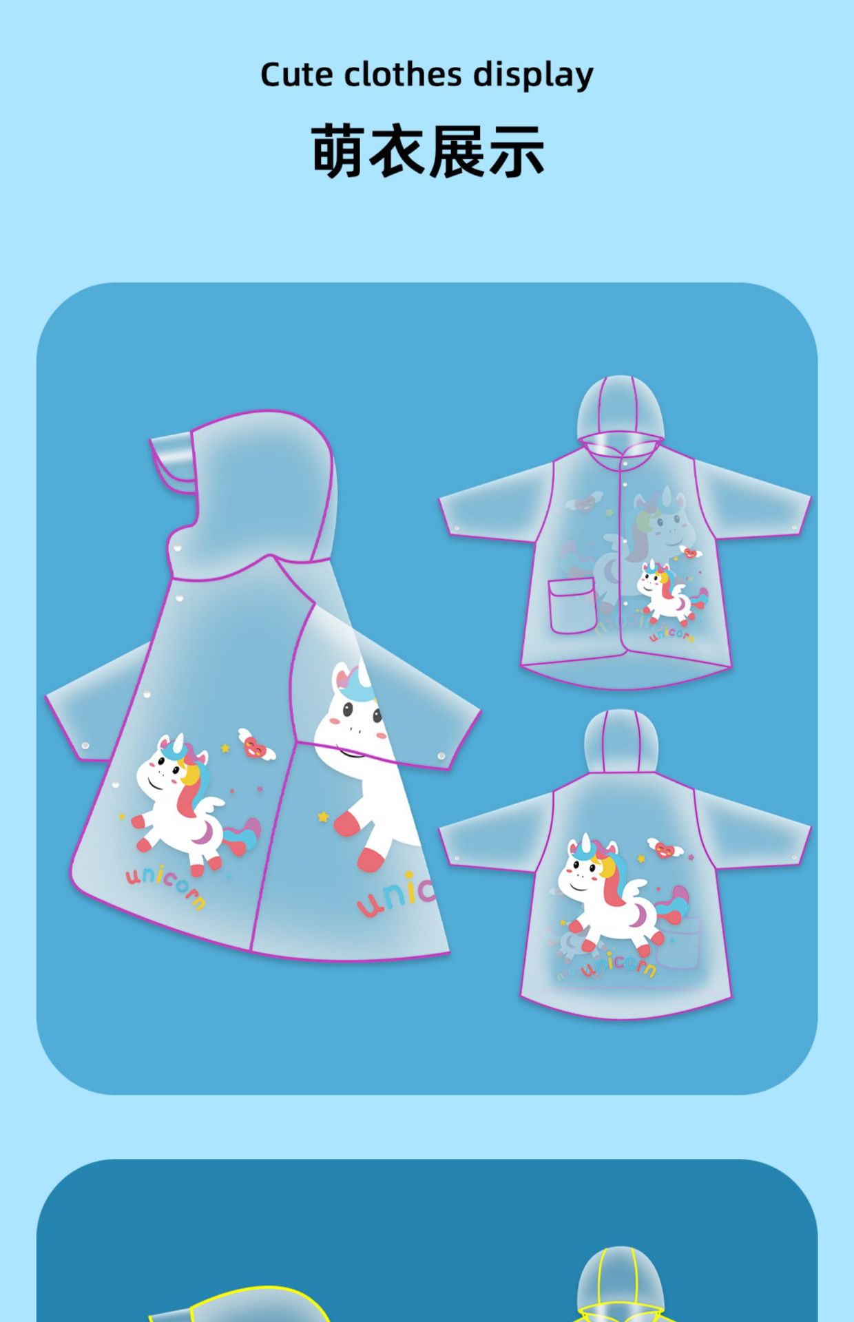 어린이 비옷 소녀 소년 학생 귀여운 유치원 아기 만화 긴 반투명 판초 학교 가방 없음스토어 가기