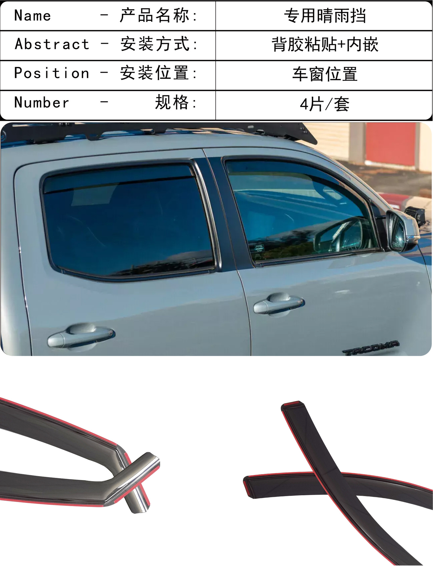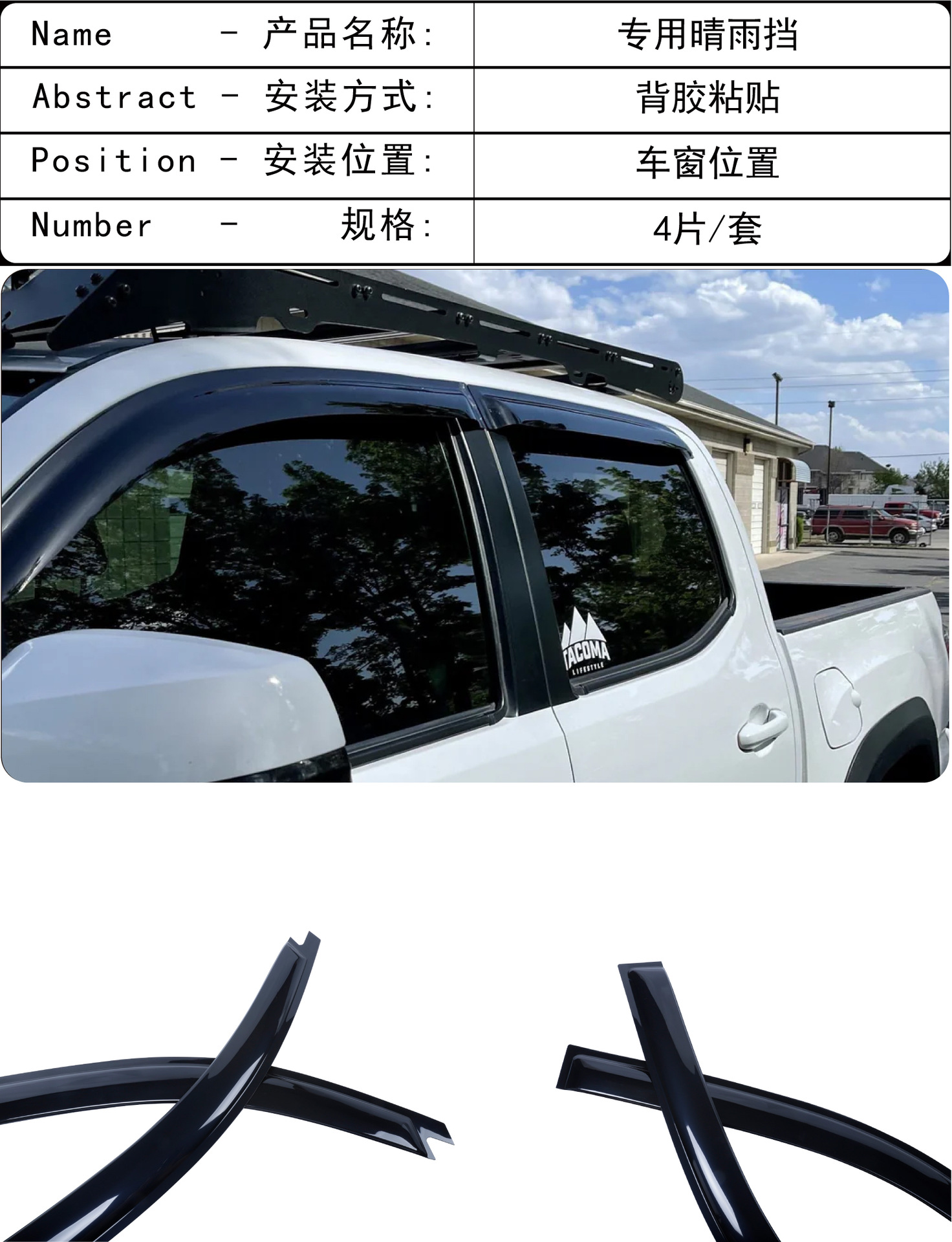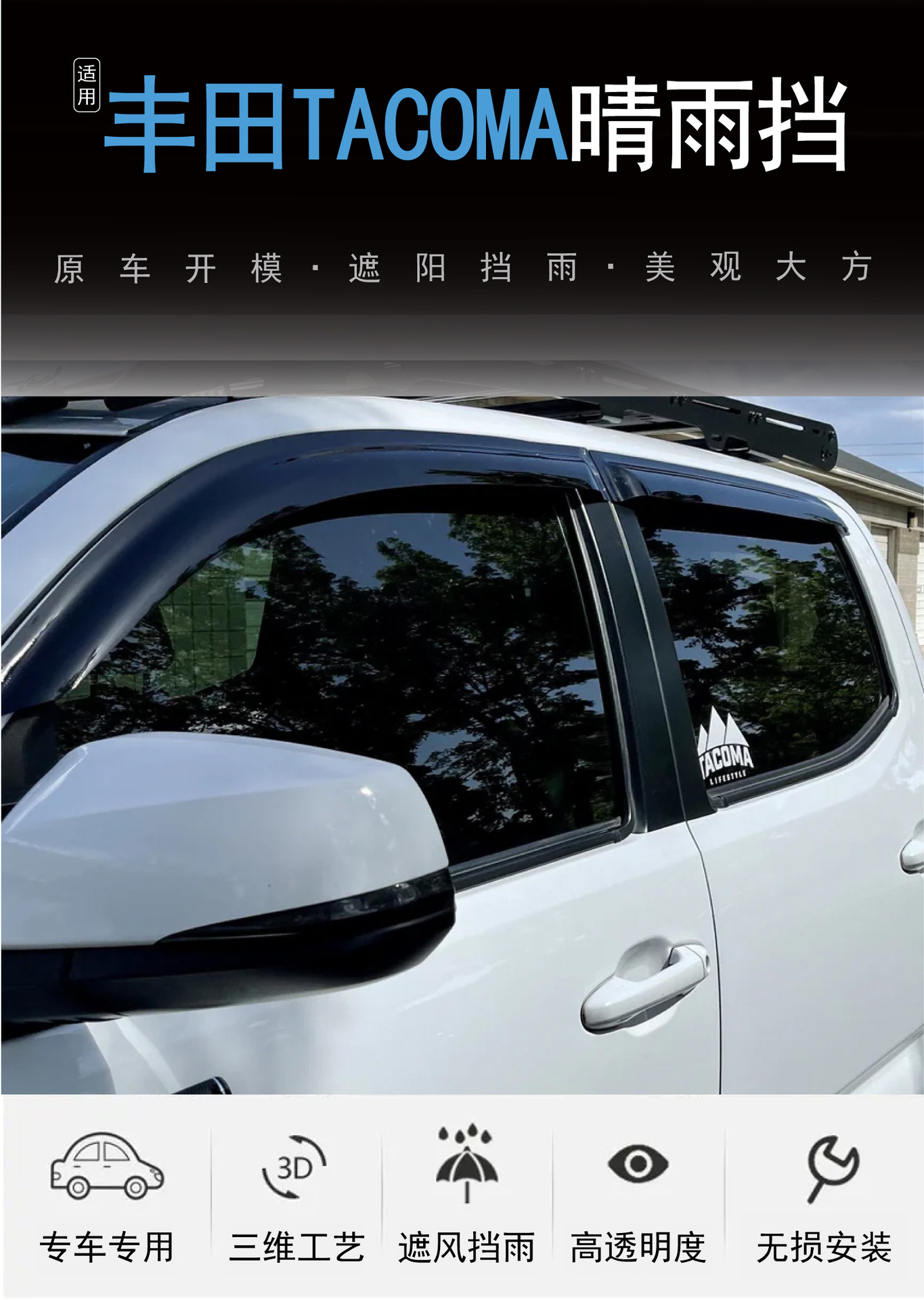 2005-2023 년 새로운 Toyota Tacoma Tacoma 창 커버 비 방지 자동차 비 방패의 국경 간 응용 프로그램