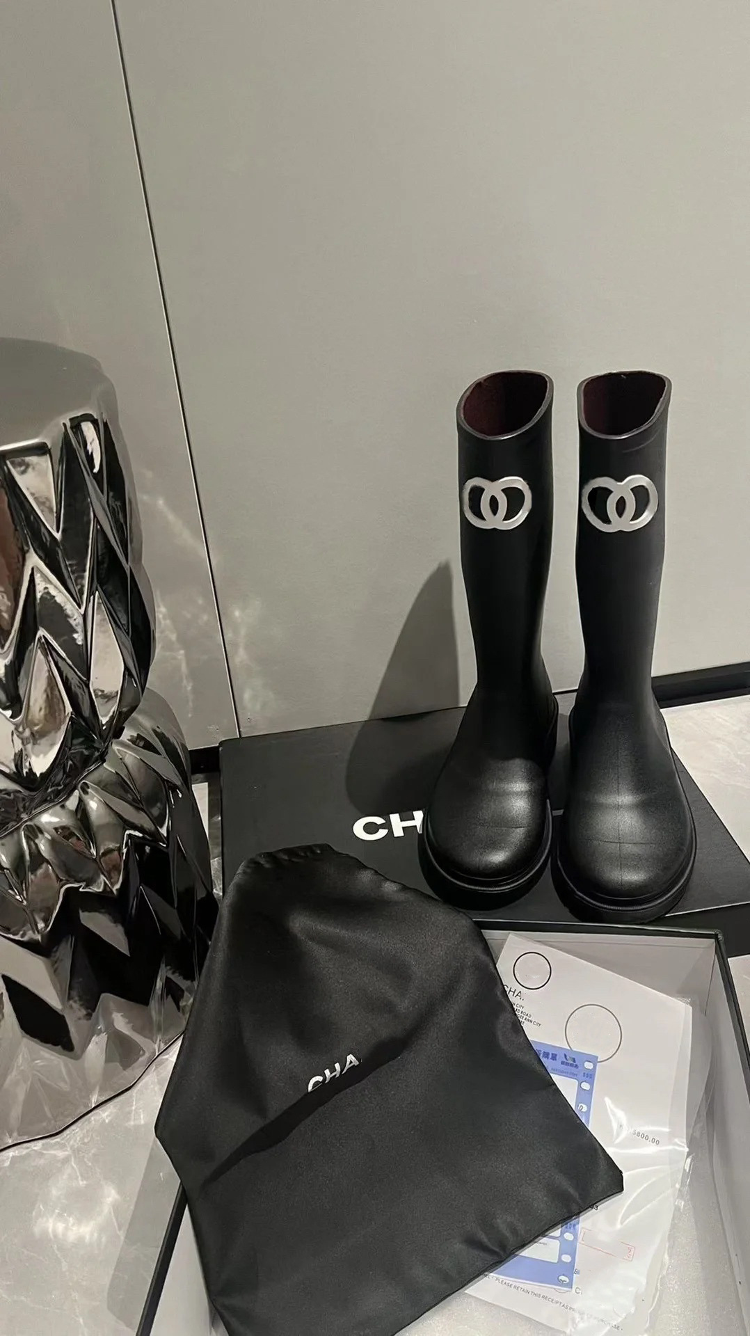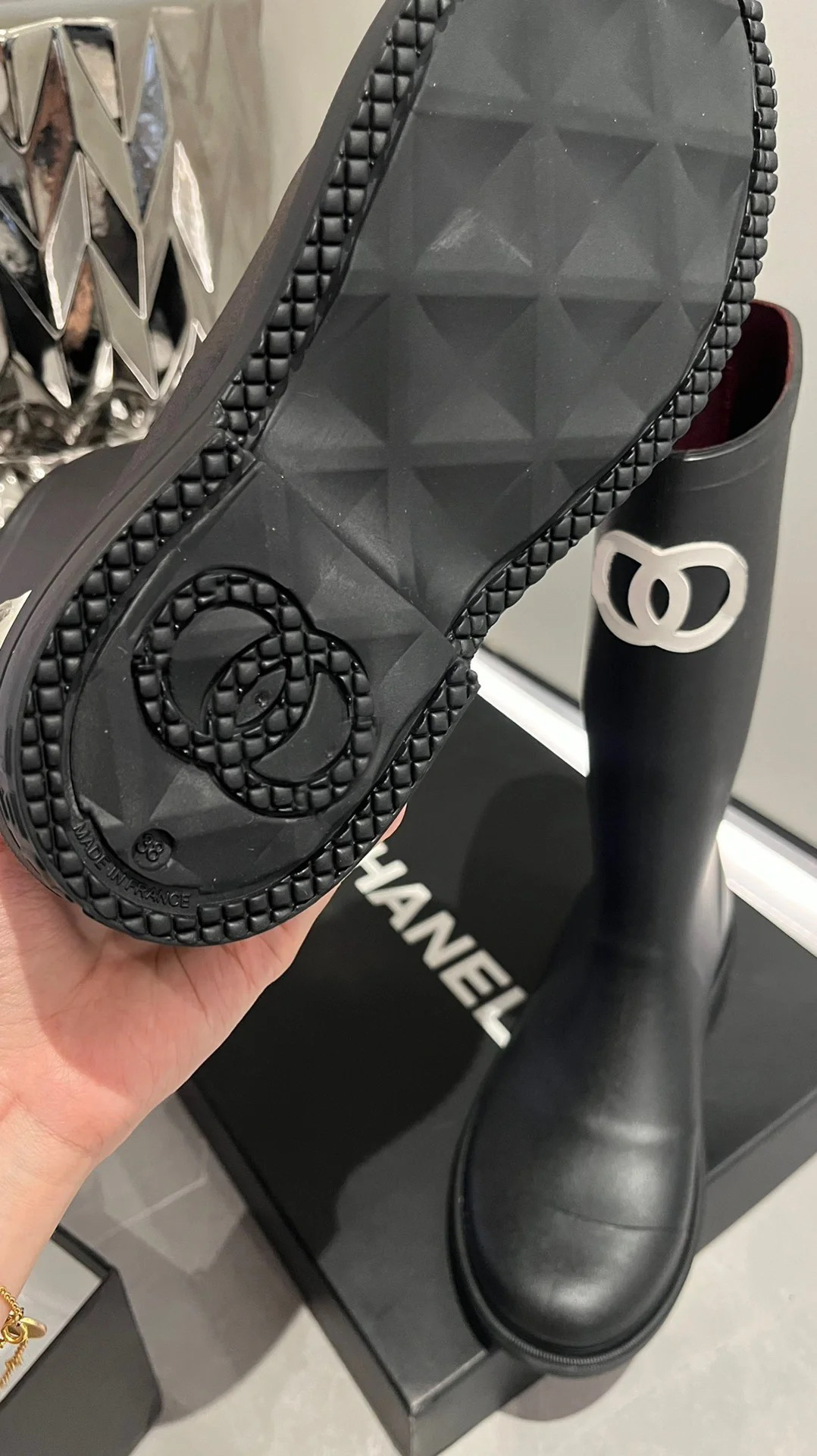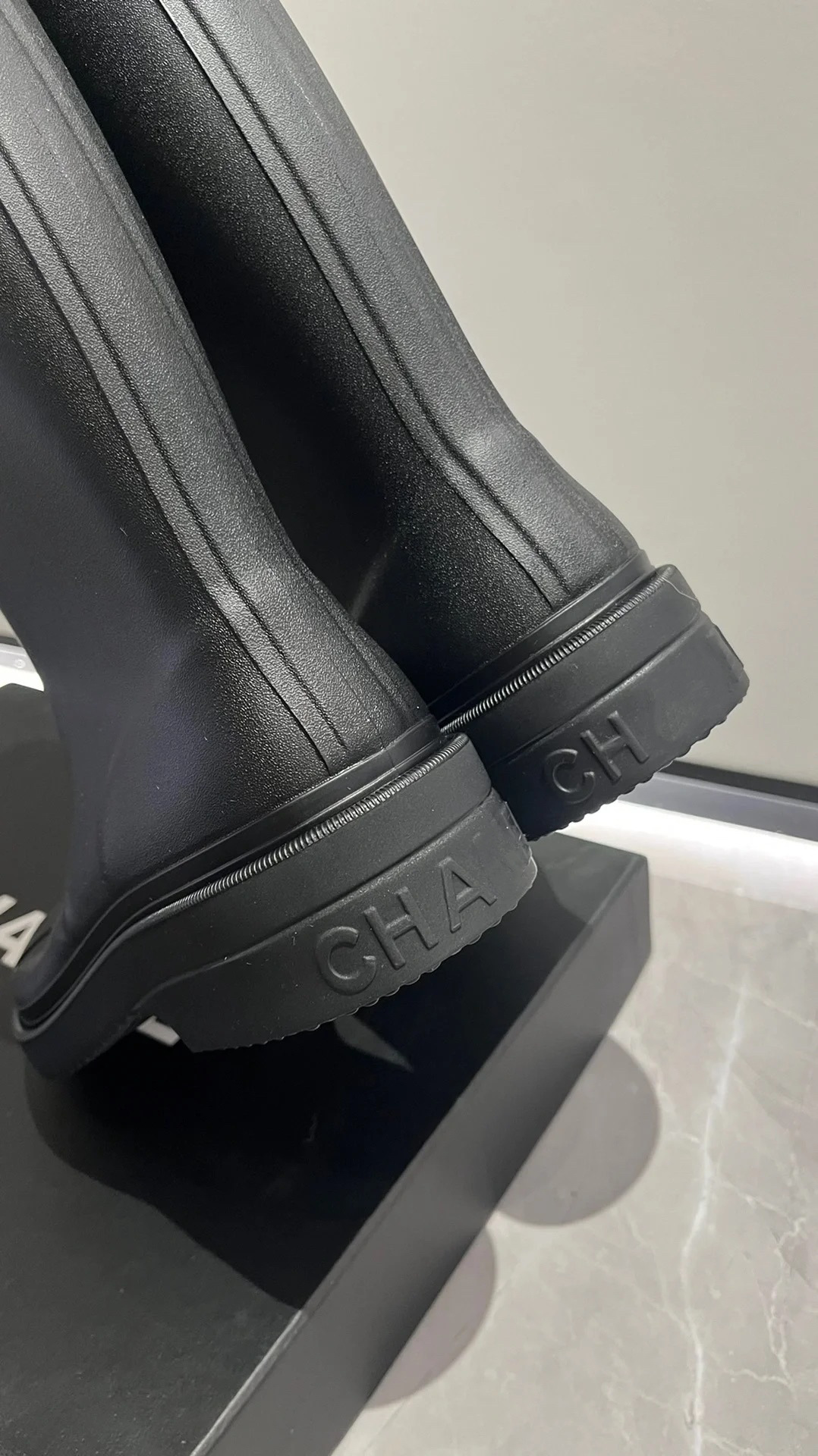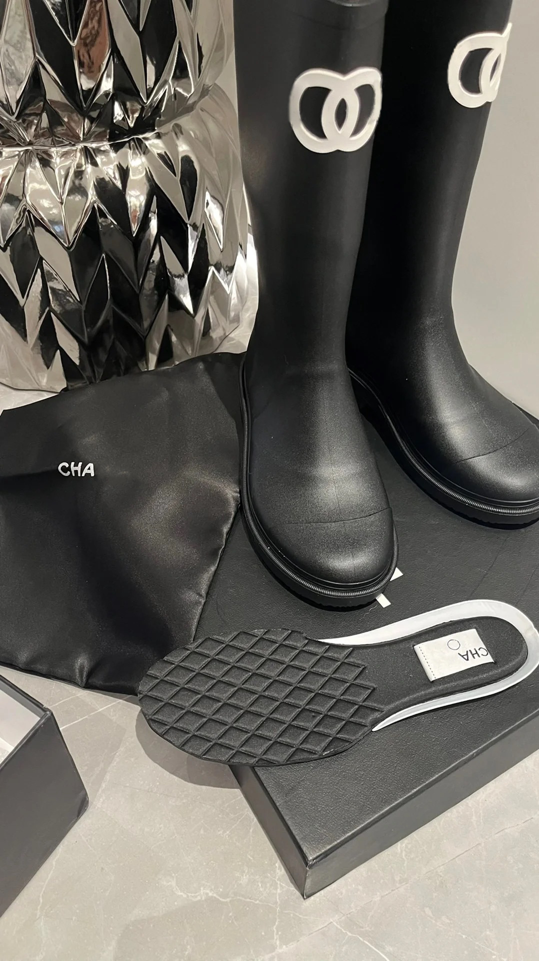 패션 샤넬 스타일이지만 무릎 롱 부츠 여성용 롱 나이츠 두꺼운 하단 블랙 하이 미들 스타일 고무 장화스토어 가기