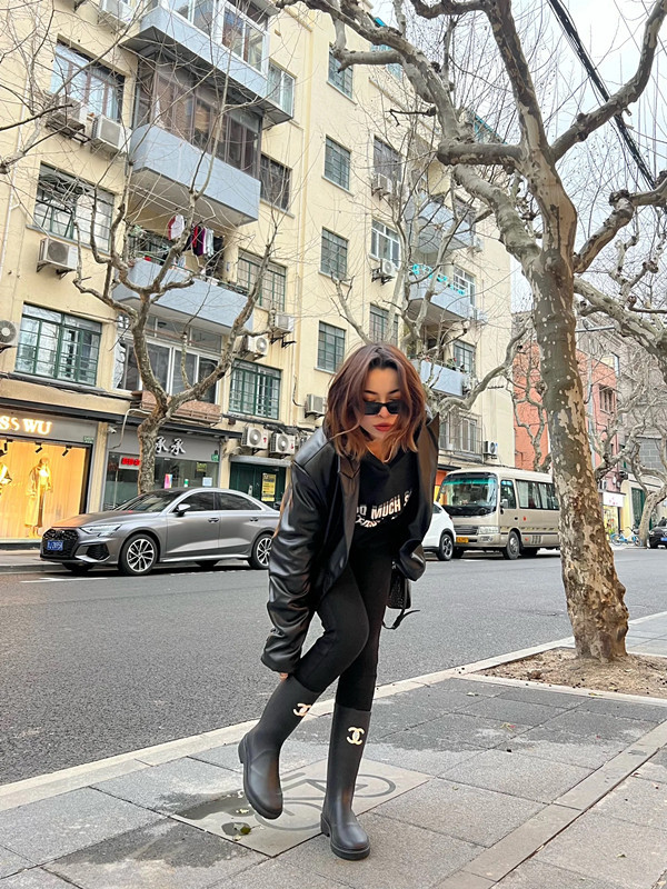 패션 샤넬 스타일이지만 무릎 롱 부츠 여성용 롱 나이츠 두꺼운 하단 블랙 하이 미들 스타일 고무 장화