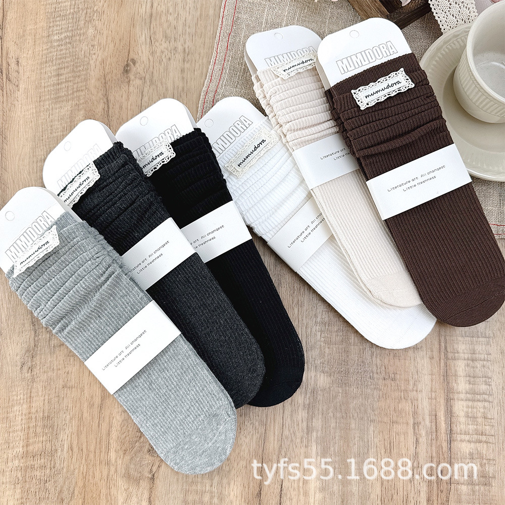 【名称】韩版儿童中筒袜秋女童袜子小童宝宝小腿袜蕾丝布标棉袜公主小腿袜