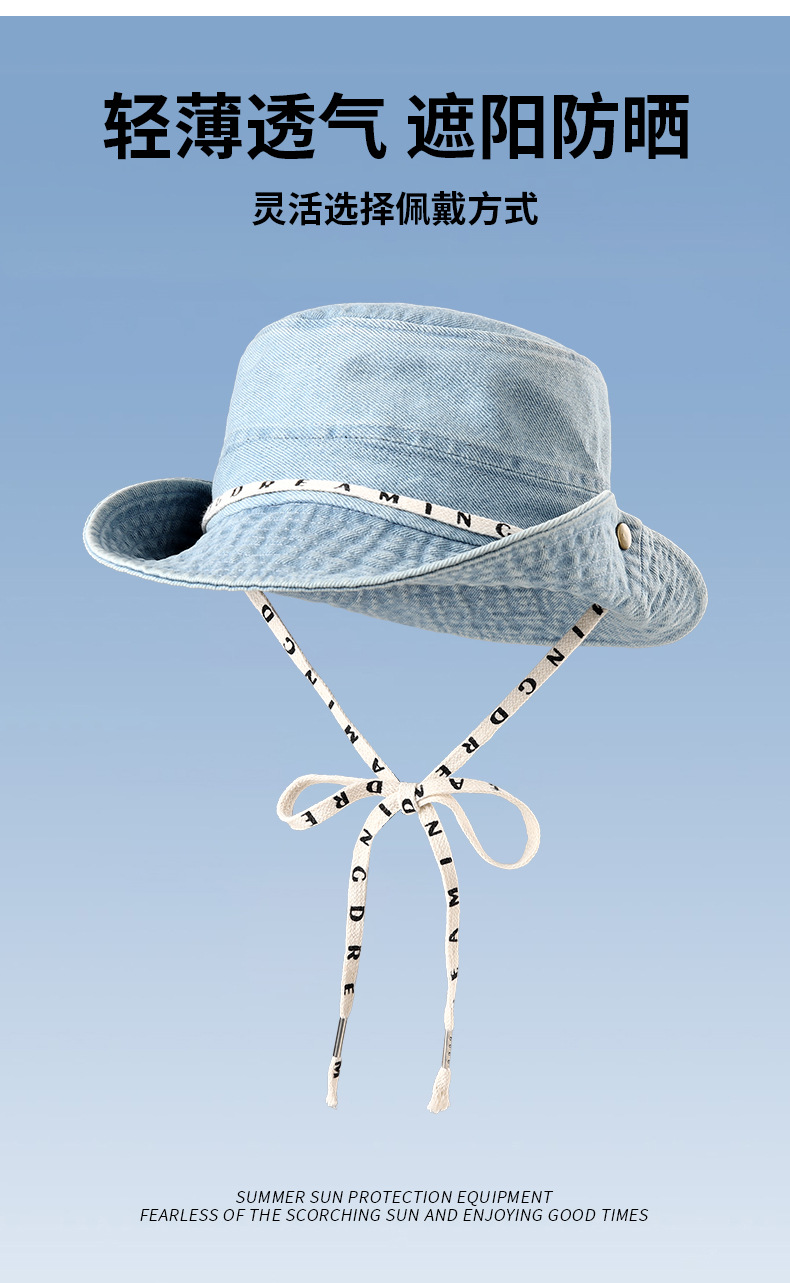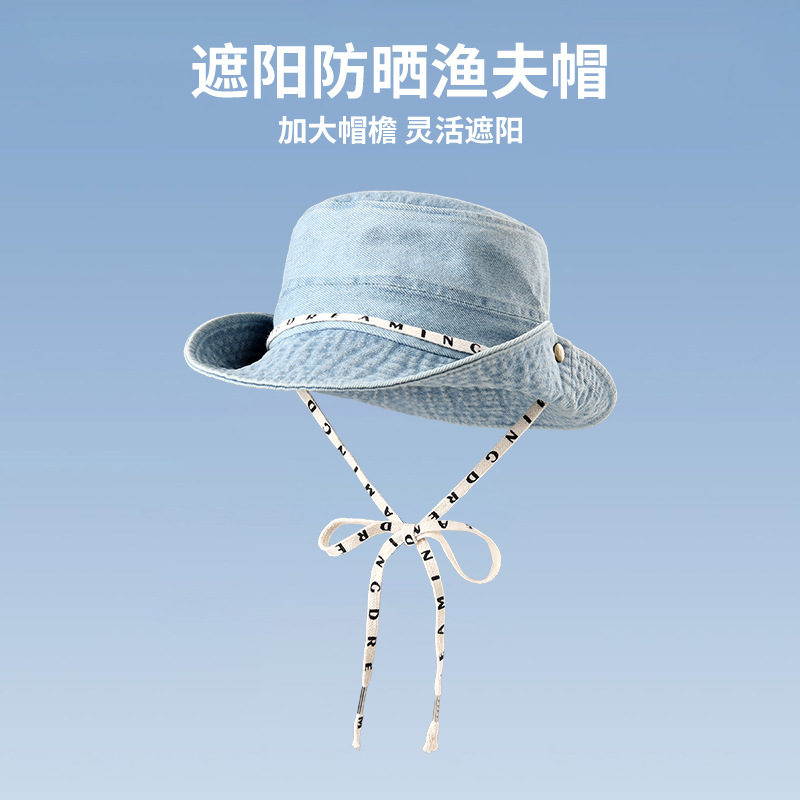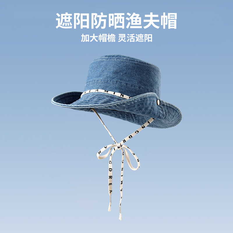 한국판 데님 어부 모자 남녀 봄과 여름 얇은 챙이 넓은 일본 얼굴 바이저 선 스크린 데님 모자 도매