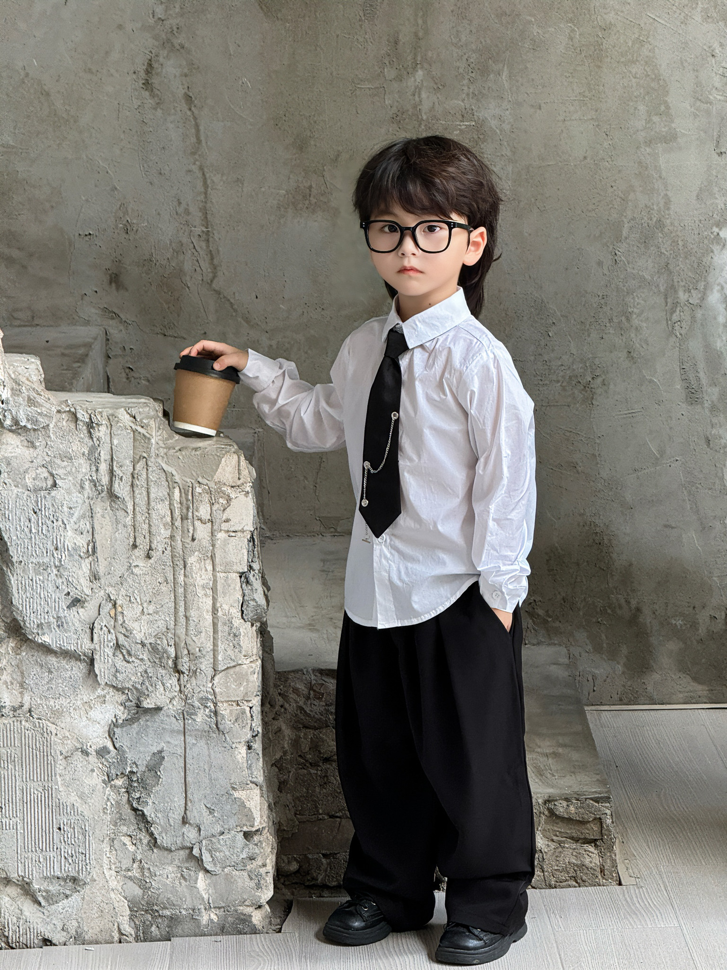 • 6666 빅 화이트 셔츠 + 체인 타이