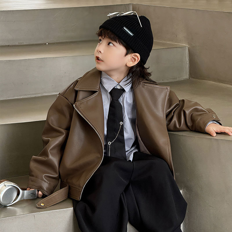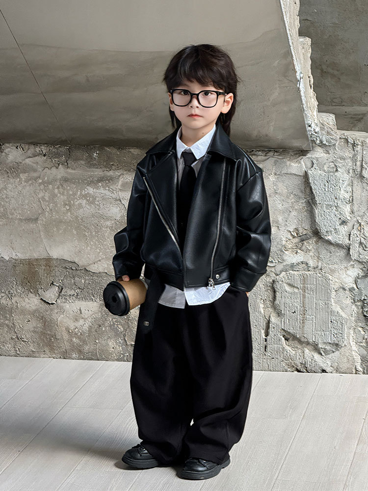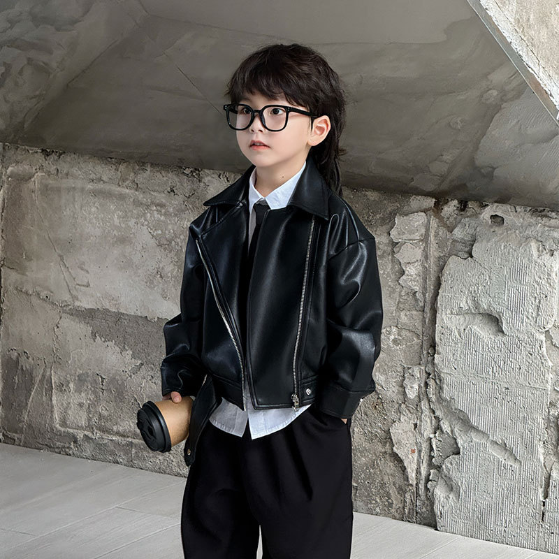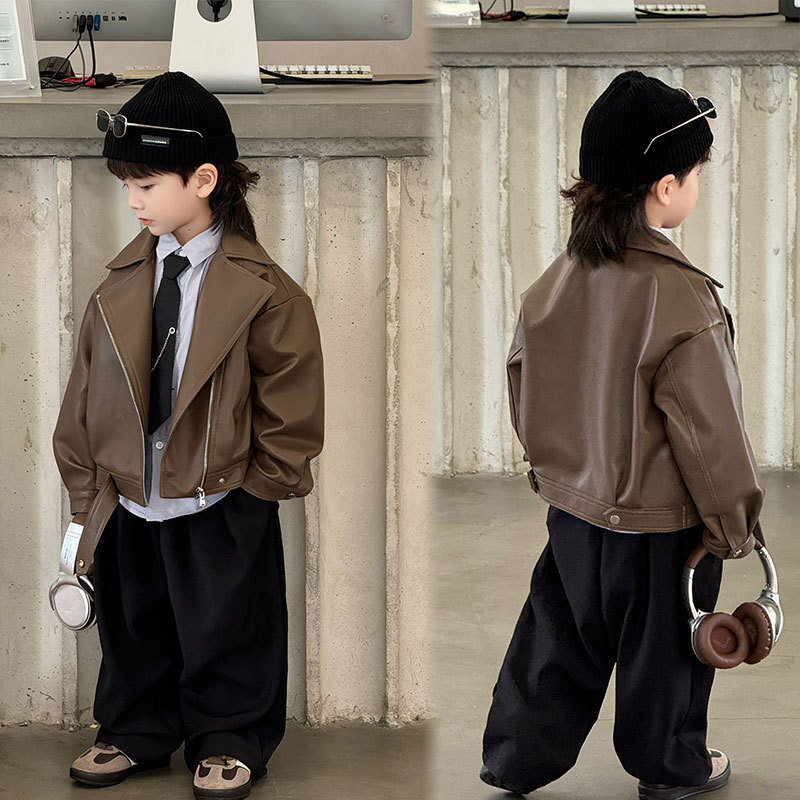 아동복 2025 봄, 가을 새로운 가죽 자켓 탑 아동 캐주얼 패션 가죽 자켓 트렌디 한 스타일 드롭 배송