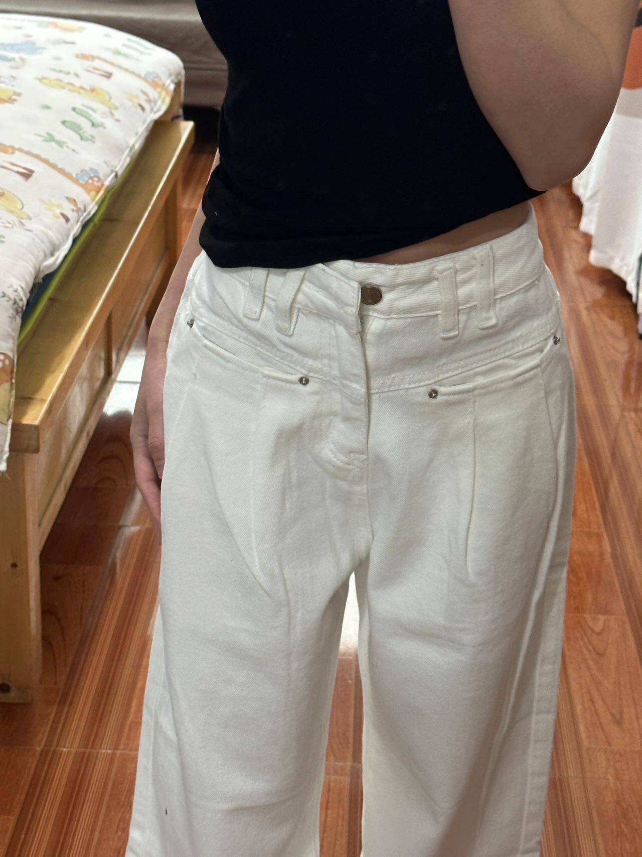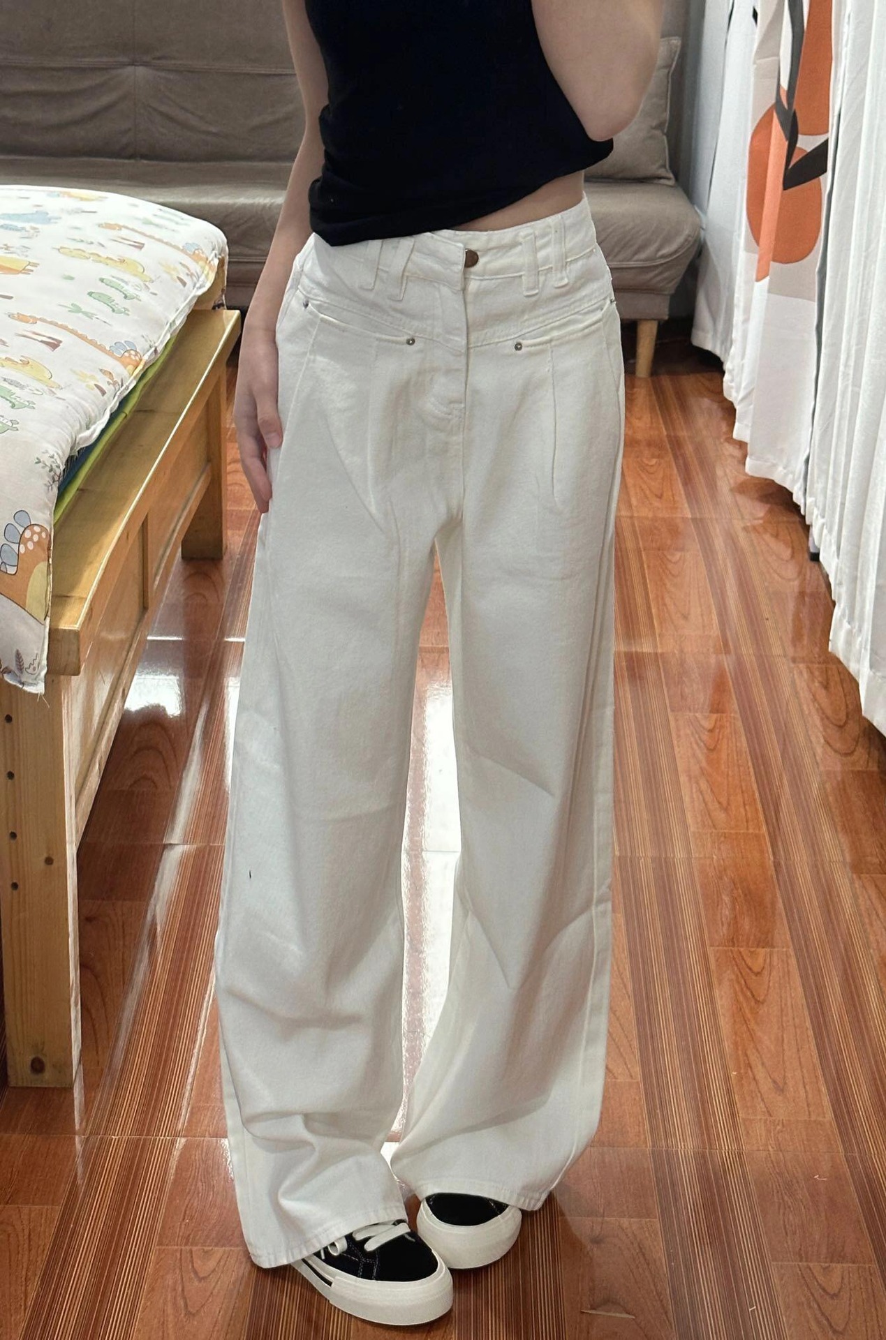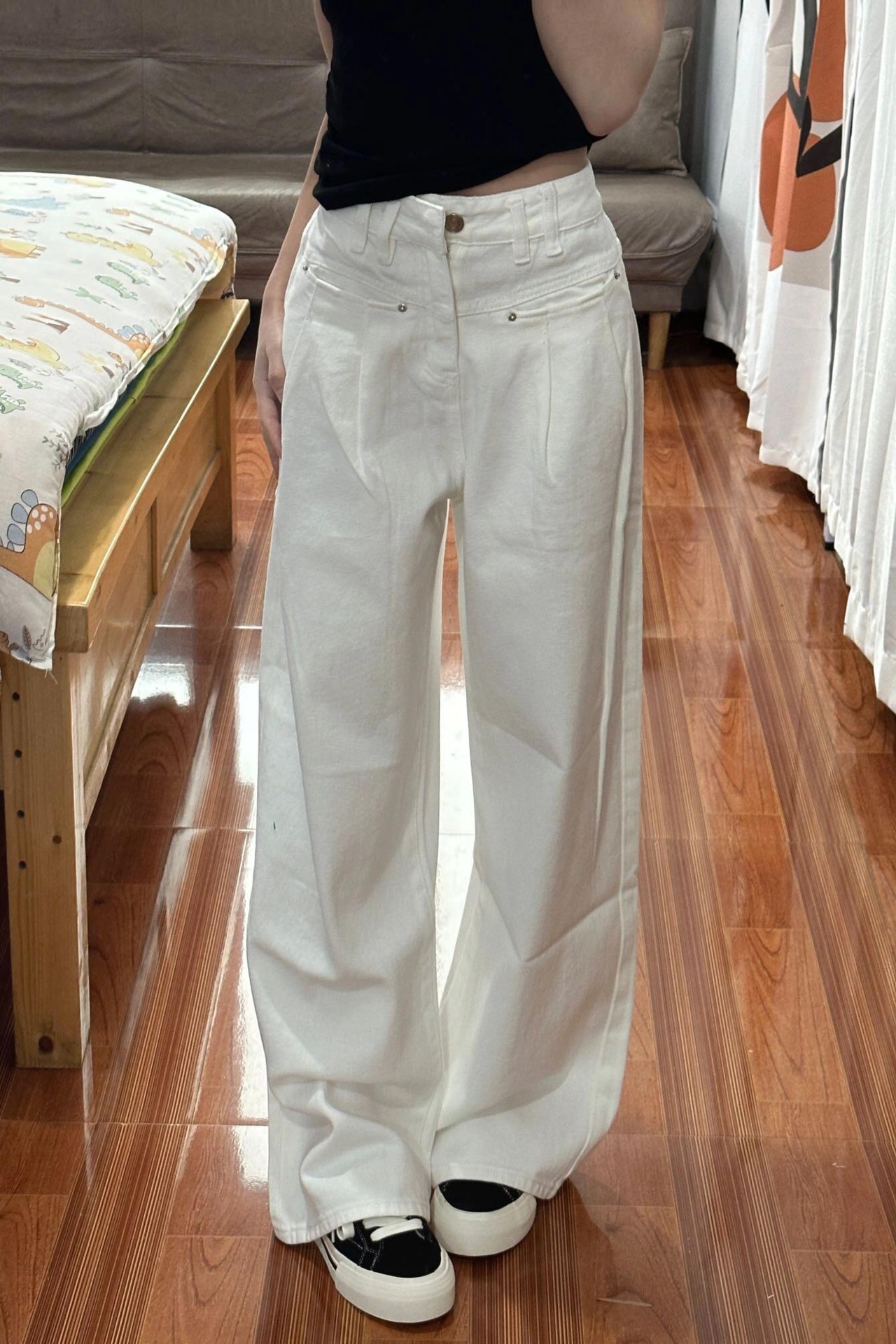 화이트 하이 허리 청바지 여성 가을 아메리칸 스타일 스트리트 느슨한 스트레이트 와이드 레그 커플의 올 매치 롱 팬츠