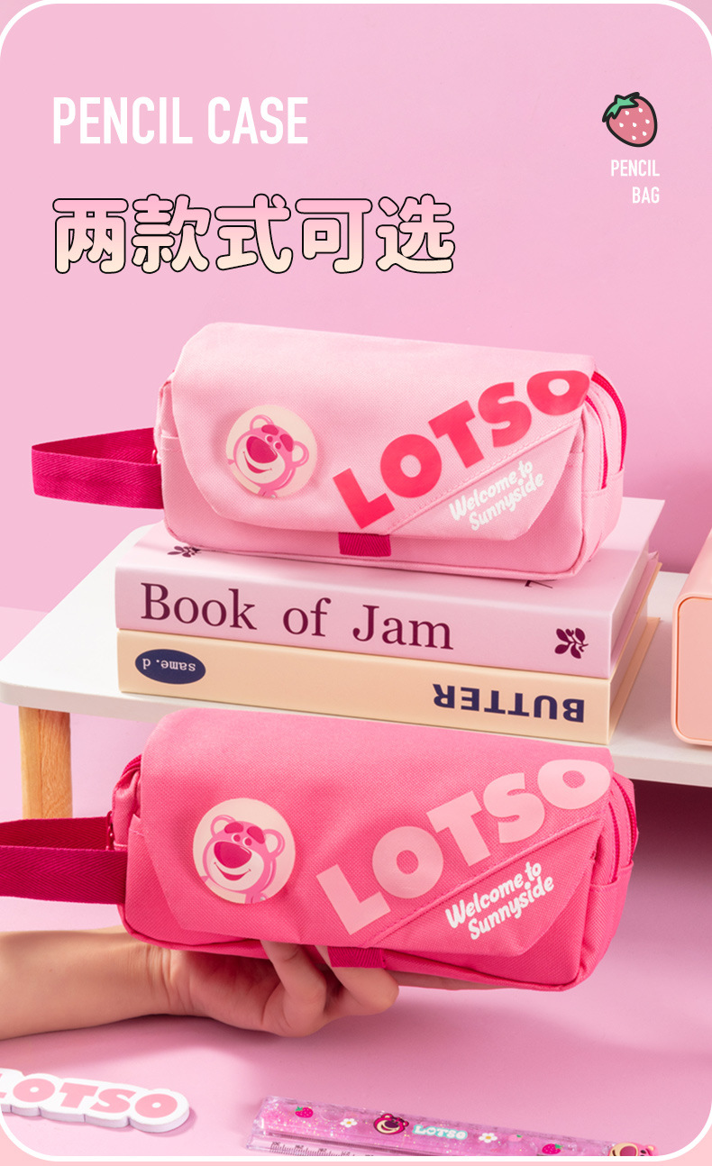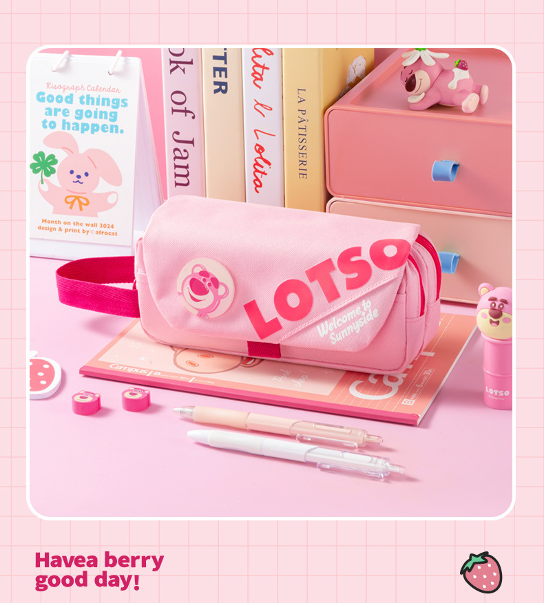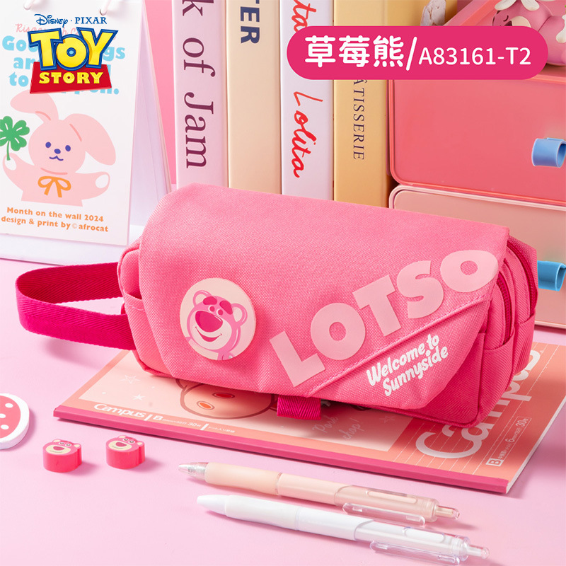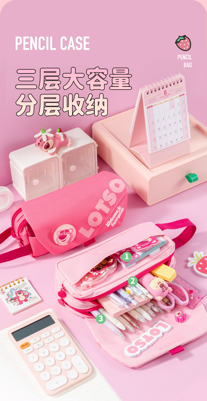 디즈니 정품 LOTSO 딸기 곰 플립 탑 3 층 연필 가방 초등학생 대용량 소녀 문구 상자 연필 상자스토어 가기