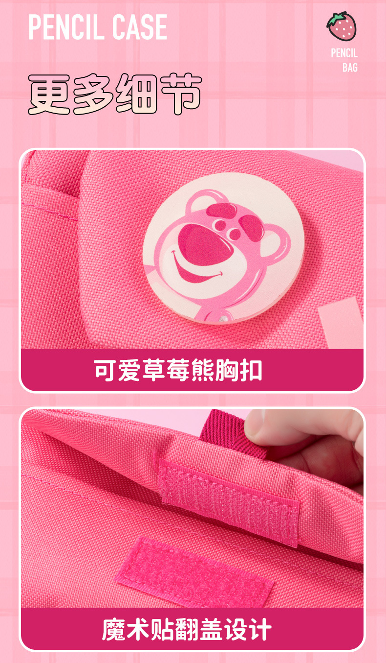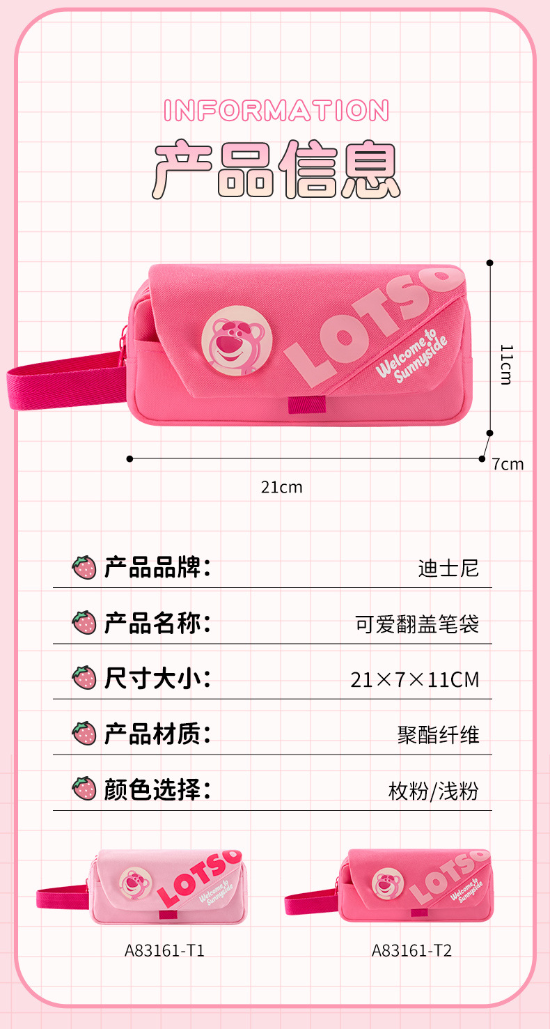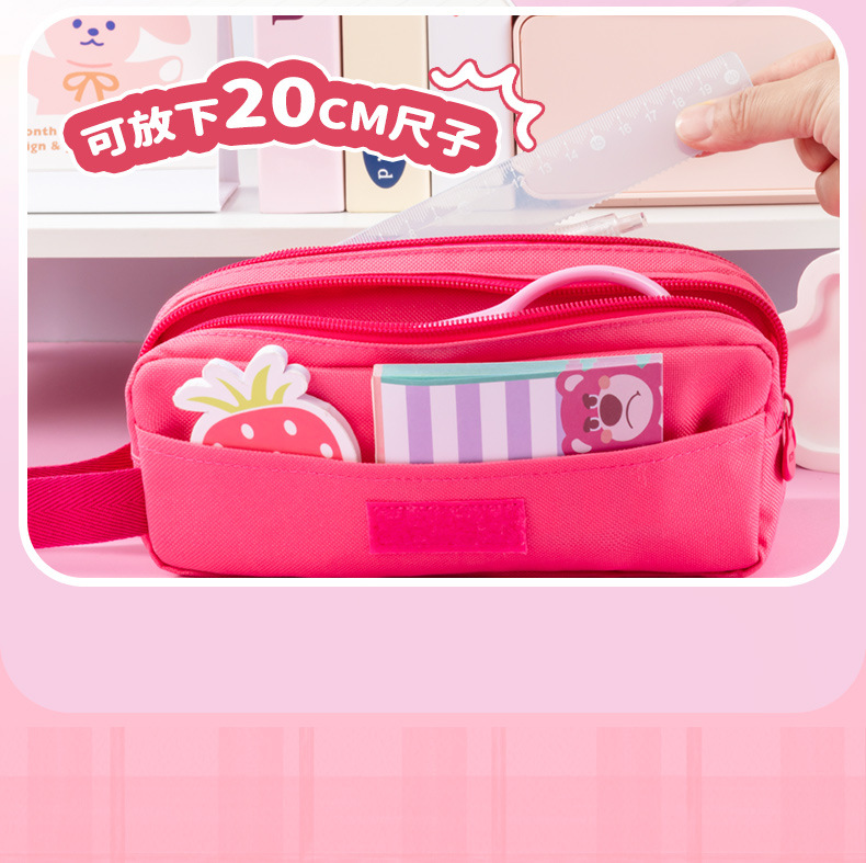 디즈니 정품 LOTSO 딸기 곰 플립 탑 3 층 연필 가방 초등학생 대용량 소녀 문구 상자 연필 상자스토어 가기