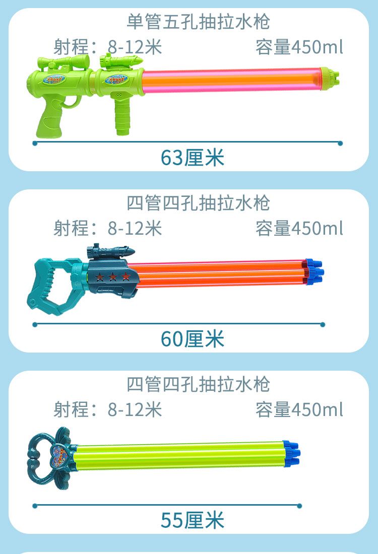 • 601 단일 튜브 3홀 인출식 물총 60cm
