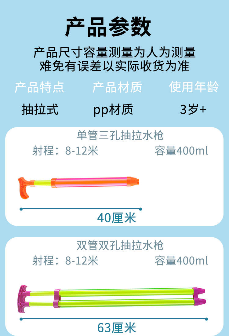 • 616 단일 튜브 이중 구멍 인출식 물총 38cm