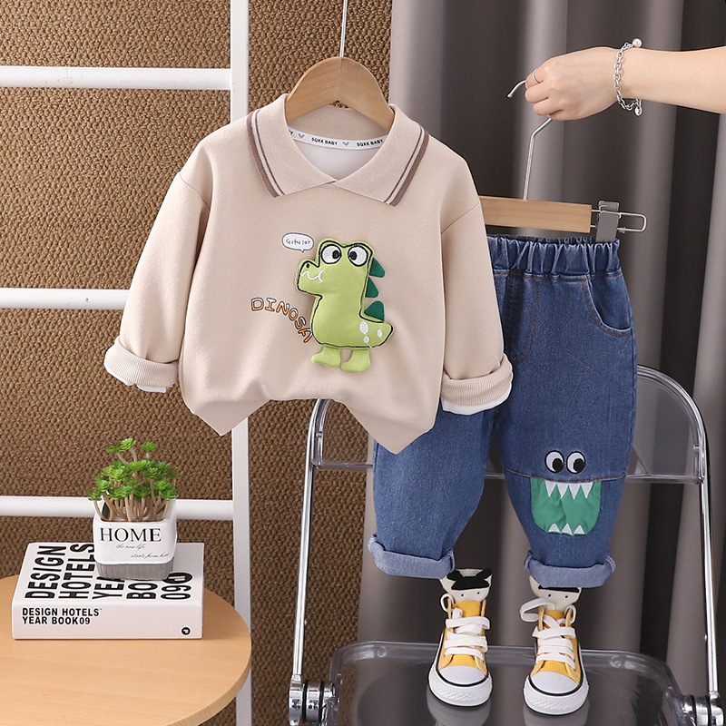 남자들의 봄 의류 세트 대외 무역 새로운 아기의 봄과 가을 옷 어린이 의류 3 차원 공룡 레버리지 긴 소매 2 피스 유행 세트