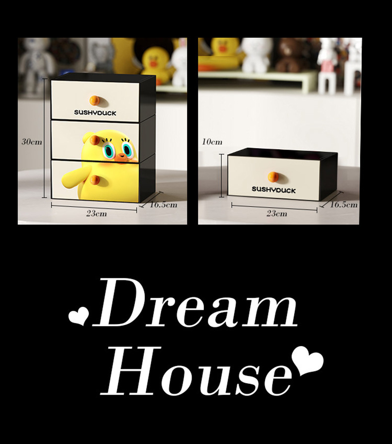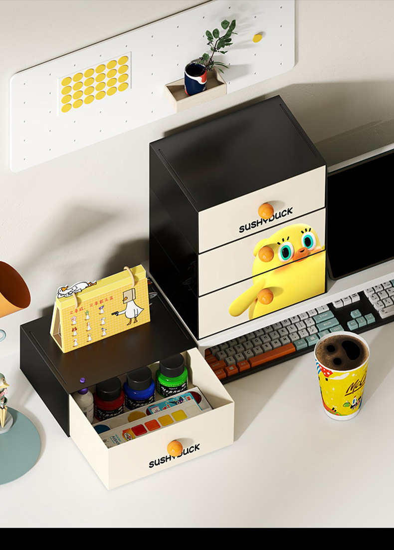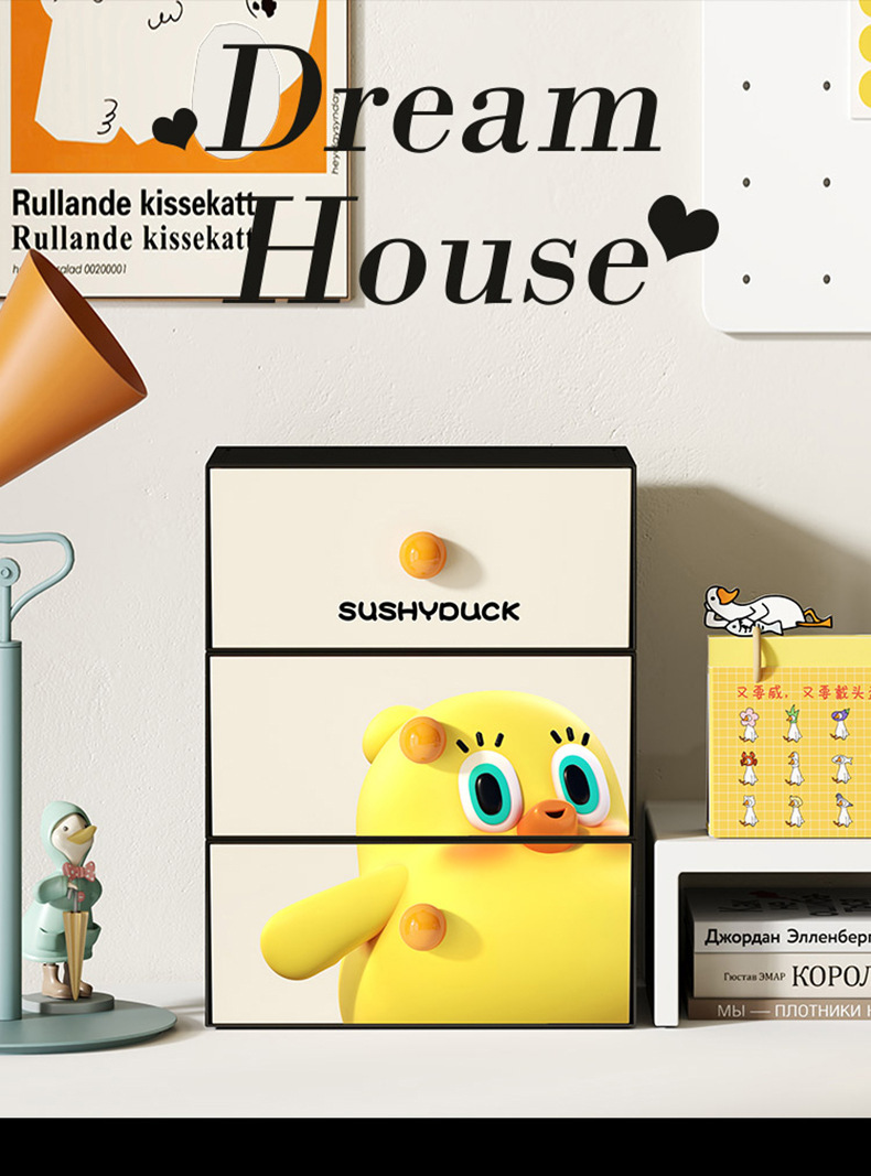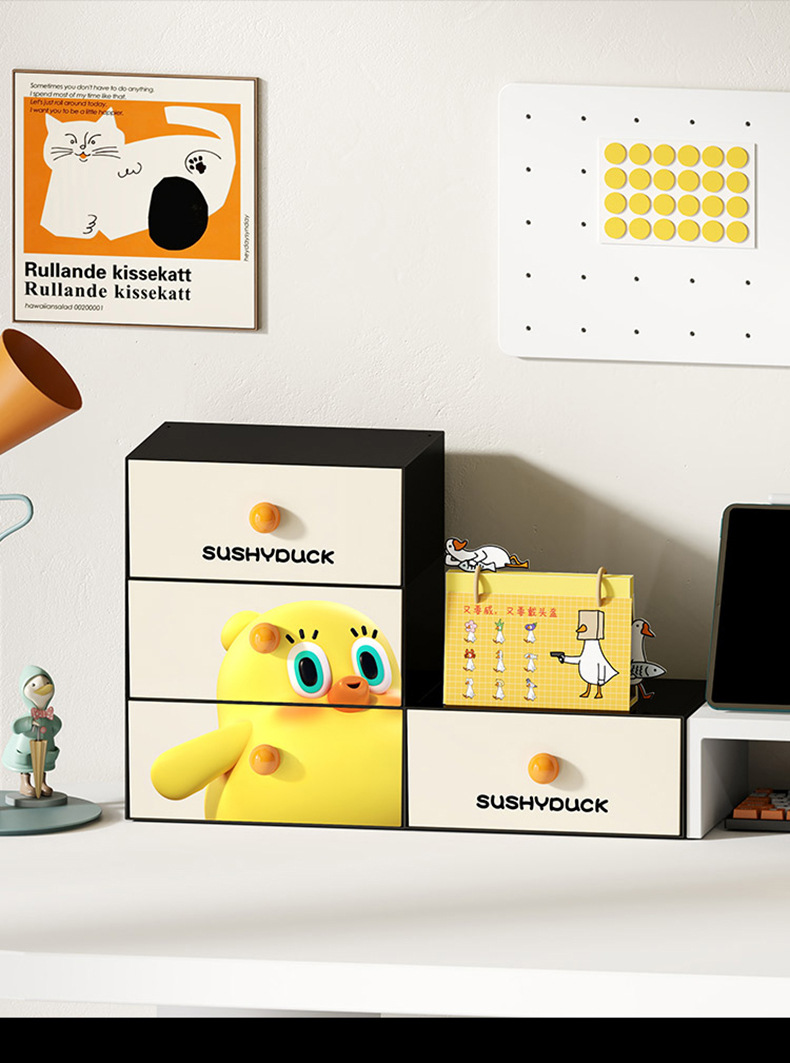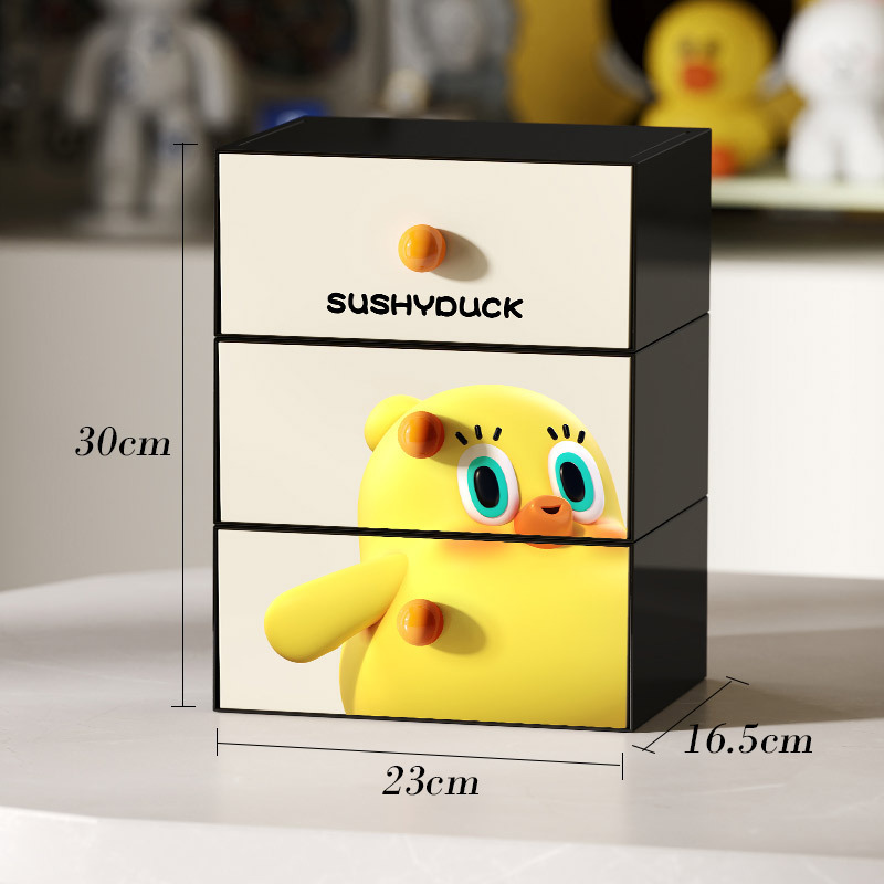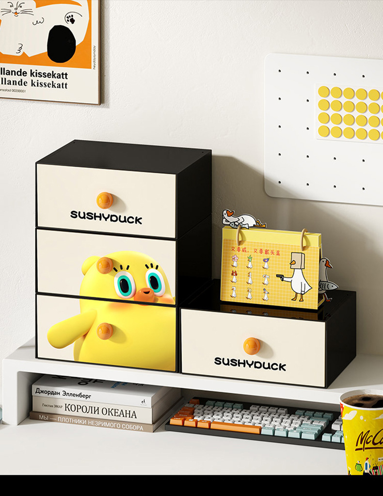화장품 저장 상자 데스크탑 마감 보관 캐비닛 귀여운 노란 오리 책상 대용량 서랍 유형 방진 보관스토어 가기