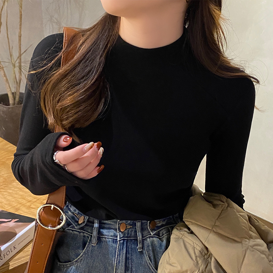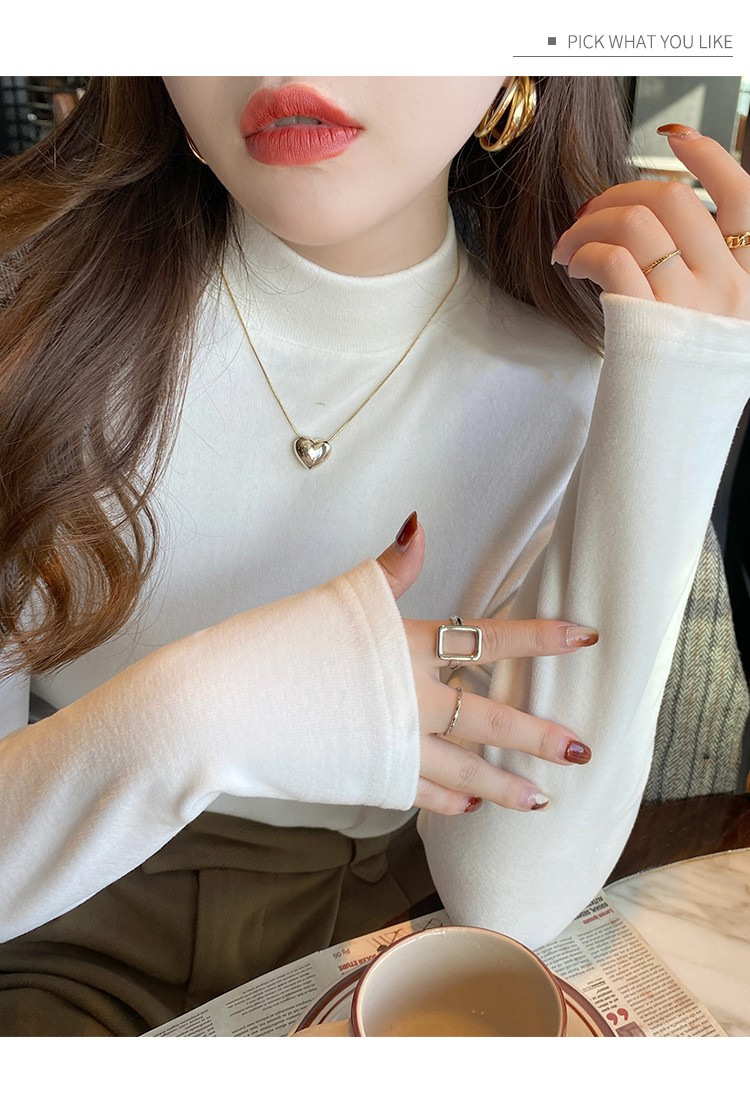 가을과 겨울 벨벳 블랙 내부 따뜻한 탑을위한 여성용 긴팔 기모 두꺼운 미드 하이 칼라 베이스 셔츠스토어 가기