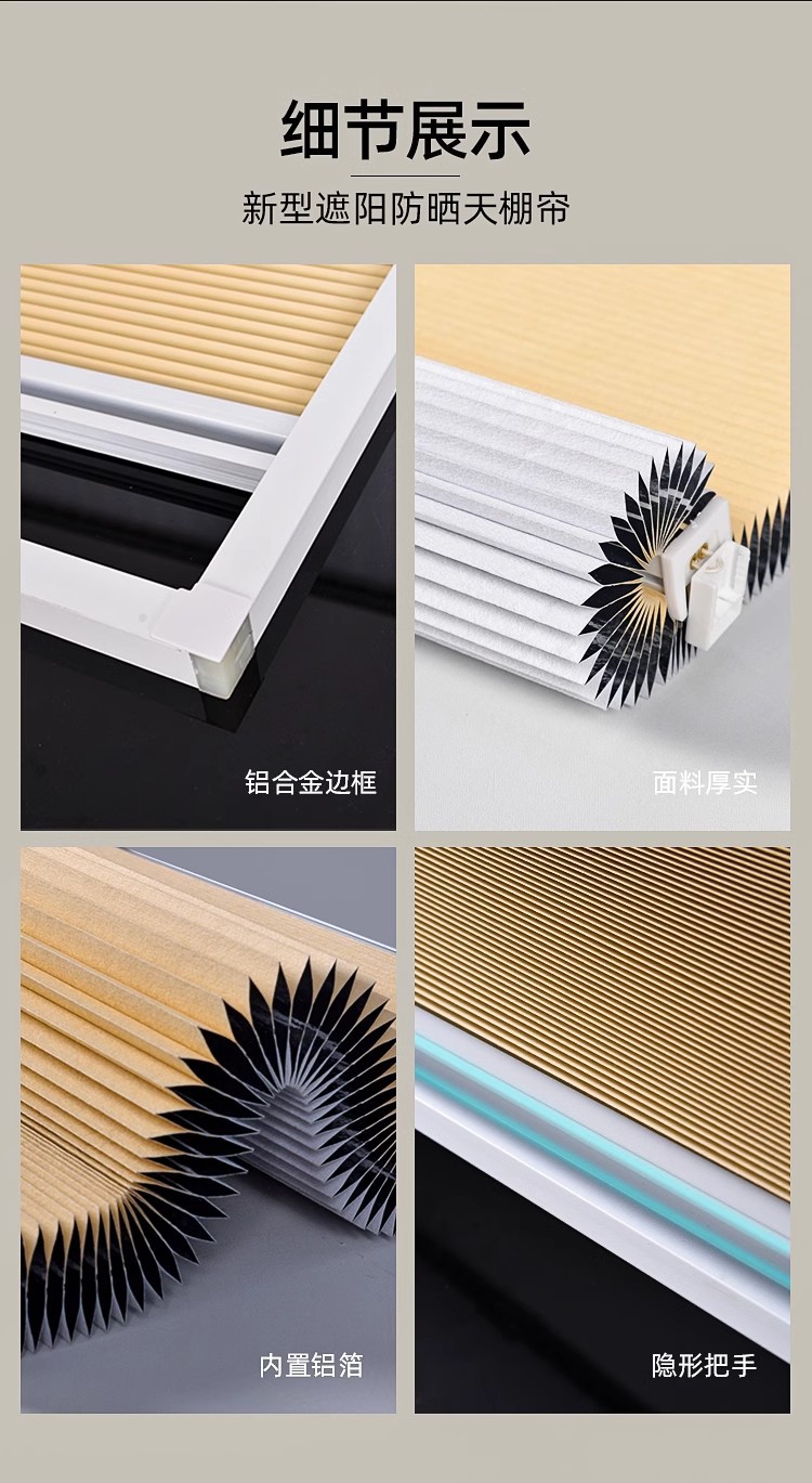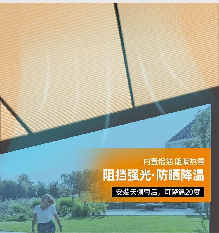 태양 방 차양 지붕 커튼 전체 음영 단열 선 스크린 천장 벌집 커튼 유리 지붕 전기 벌집 천 채광창