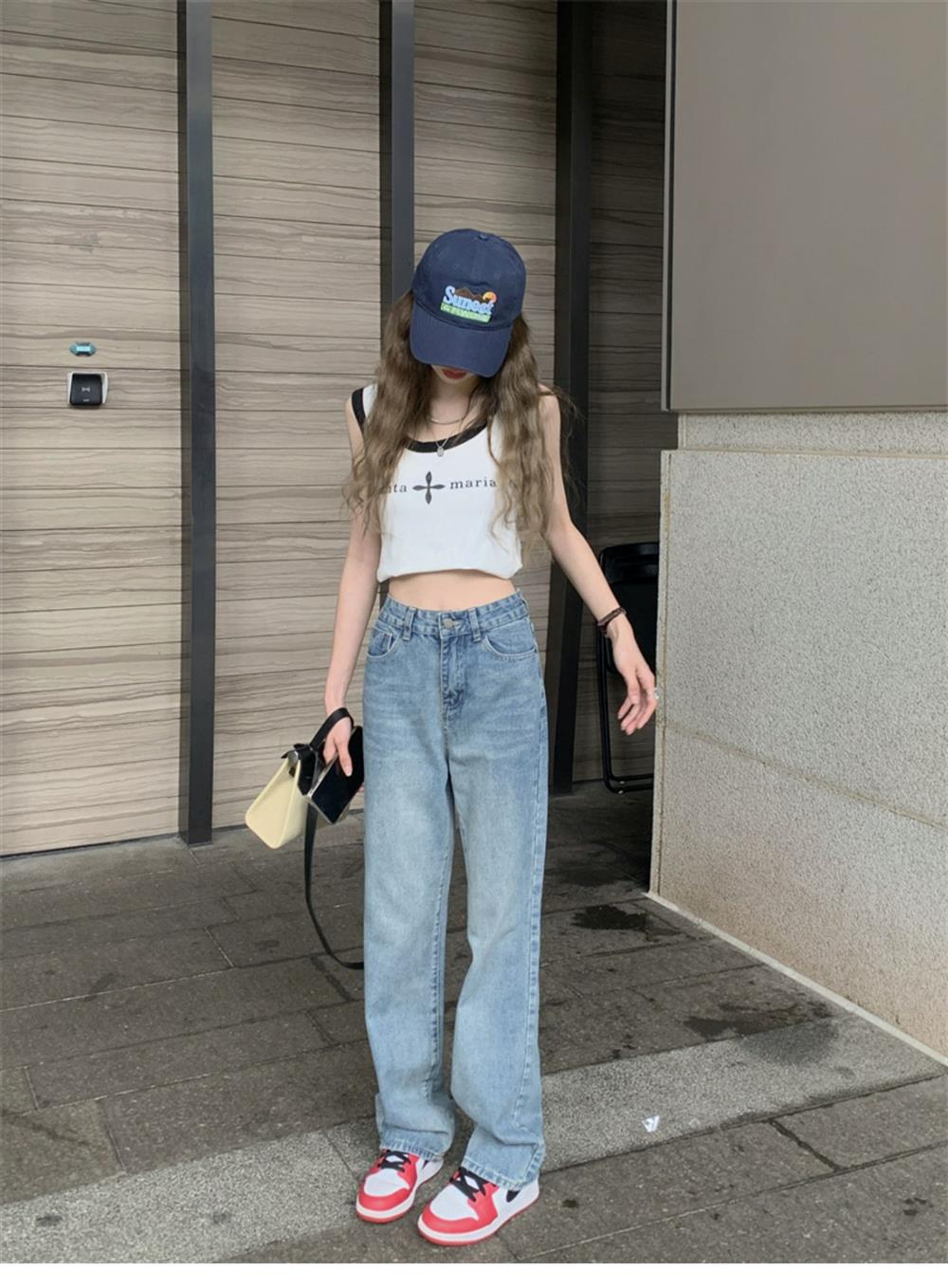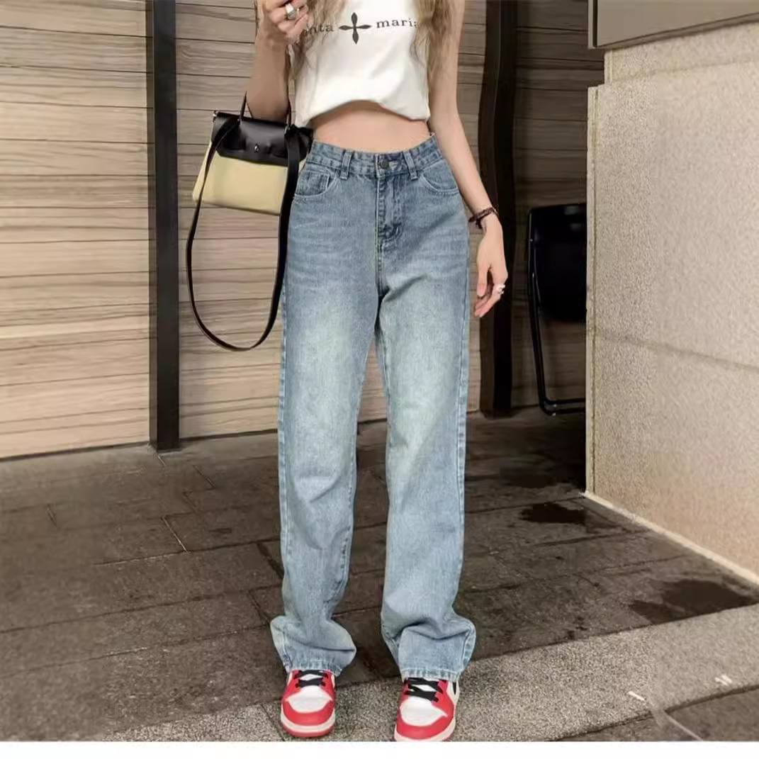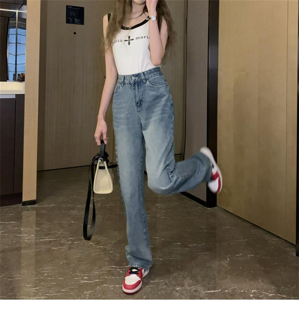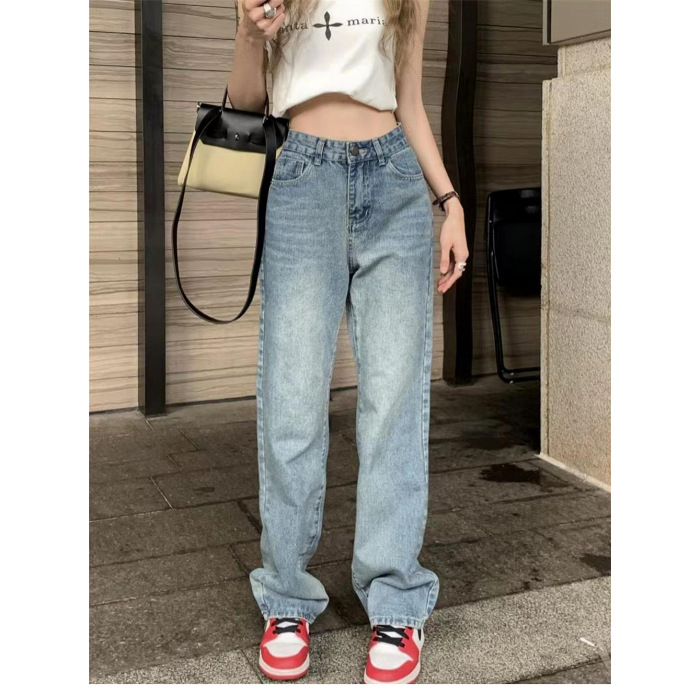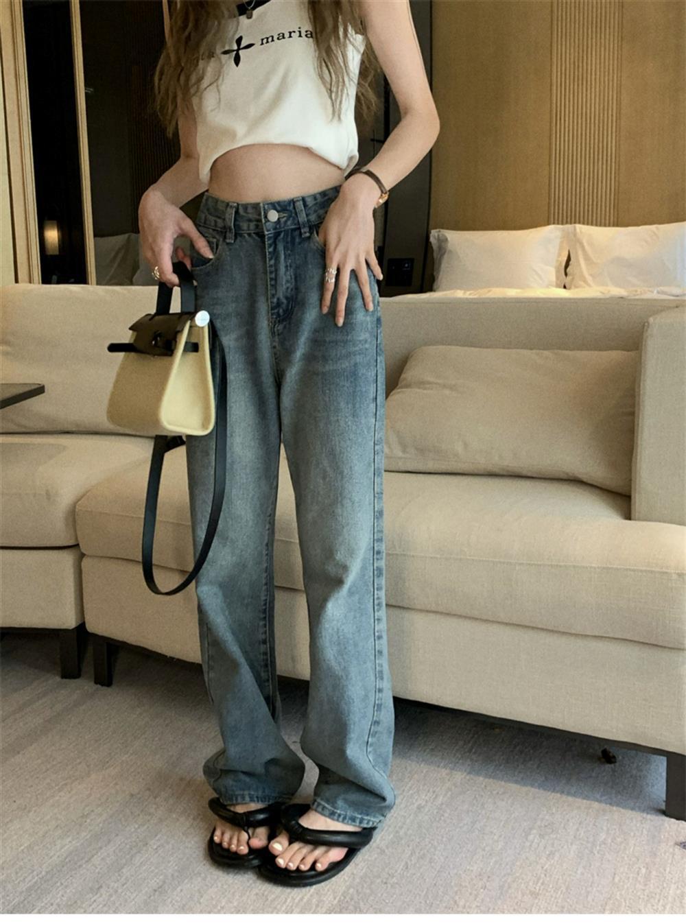 작은 바지 여성의 가을 새로운 높은 허리 느슨한 좁은 데님 넓은 다리 바지 150cm 높이 스트레이트 바지스토어 가기